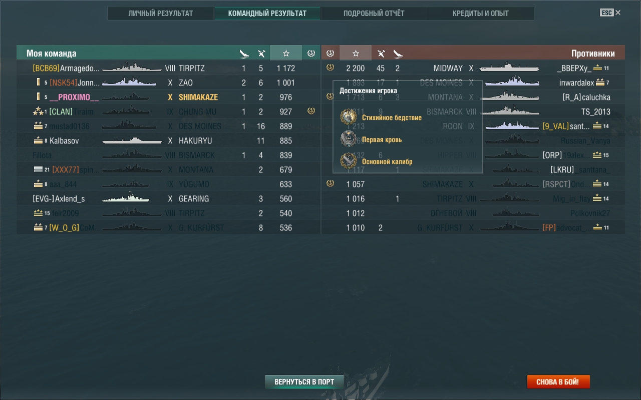 1 846 [KOMM] PACTP Участник 3 406 публикаций 6 226 боёв Жалоба #15 Опубликовано: 5 фев 2018, 12:07:51 Сегодня в 14:30:47 пользователь Fury_Way сказал: Всем здрасти. В этой маленькой темке просто хочу поделиться впечатлениями. Давеча на тестовом сервере выполнял БЗ. Нужно было на авике набить 75к урона. Я не авиковод от слова совсем. Ну не нравится мне крысячий геймлей из кустов, авики презираю и не играю на них вообще. Но плюшки за БЗ хочется и пришлось сесть на Мидвей. Я испытал шок. Игрок я так себе, а в авиководстве вообще дуб дубовый. И вот, абсолютно не понимая геймплея, не зная каких либо нюансов и фишек, я на легке накидал почти 160к урона. Для этого я стал за остров, поднимал группы, собирал их в один отряд, вел их к ближайшему ЛК противника и тупо откидывался на автосбросе. Фсё! Больше я не делал ничего! Абсолютно не напрягая мозги, не заморачиваясь слежением за вражескими эсмами, позиционированием на карте, танкованием, маневрами, прицеливанием и т.д. я нанес 160к урония. Понимая, что абсолютное дерево может наносить такой урон, и вспоминая/представляя что могут творить/творят рукастые авиководы, у меня в очередной раз волосы встали дыбом во всех местах. Я не понимаю, зачем держать в игре такую имбалансную технику, которая может творить с противником всё что угодно. Ну это ж капец просто. А некоторые еще и жалуются, как им тяжело играть на авиках. Ага, еще и бомбы бронебойные им дали. У меня до сих пор глаза по 5 копеек от ужаса. Можно, если очень захотеть, понять различные фейлы разработчиков, но зачем давать такую мощь отдельно взятому классу, который гнет все через колено одной левой абсолютно не напрягаясь, я не понимаю. Вот, не поверишь, сам так думал. Пока не попробовал. К сожалению, все не так просто, как ты рассказал. Авик контрится, прежде всего, другим авиком. Тебе нужно четко знать про каждый корабль, есть ли у него заградка, какое у него ПВО, анализировать его спутников. Например, нормальная ситуация - скидываешься на ЛК, в 3 км от него крейсер. как ты думаешь, врубит ли он заградку? Ведь не на него ведь скидываются. Второе, а умеет ли цель в уворот? Пока ты крутишься, авик не может скинутся, работает твое ПВО. Катаю сейчас на Лионе (брит) и Дьюк оф Йорк. Проблем с авиками нет вообще. Полностью. Третье, крысиный геймплей. Зависит от стиля игры. Захват точек, конечно, редкий случай, но пострелять из ПМК - милое дело: Скрытый текст На скрине - тащунский бой, так. конечно, далеко не всегда. Рассказать о публикации Ссылка на публикацию