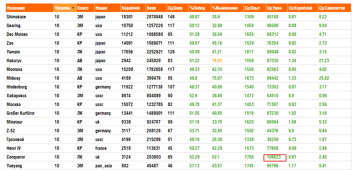 572 vashek Старший бета-тестер, Коллекционер 1 318 публикаций 9 861 бой Жалоба #31 Опубликовано: 5 фев 2018, 13:00:41 (изменено) Сегодня в 15:41:33 пользователь Renamed_user_62835977 сказал: Открой Прошипс и найди корабли с самой высокой средухой. И сколько там плоских? открыл поставил фиолет. добавил по урону- одни плоские. и так каждый раз- выбивается на сини и зелени конкуэр и то пока "ан масс " не вкачал Hakuryu 10 АВ japan 170954 Midway 10 АВ usa 165903 Conqueror 10 ЛК uk 165799 Изменено 5 фев 2018, 13:04:08 пользователем vashek Рассказать о публикации Ссылка на публикацию