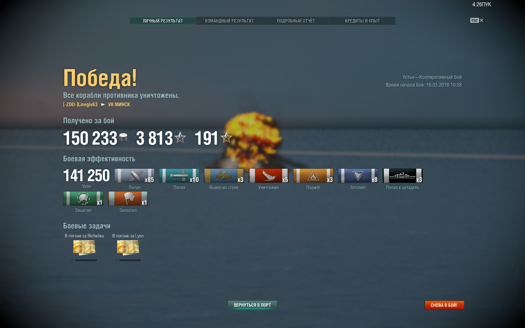 10 843 [OMSK] Linegiv63 Старший бета-тестер, Коллекционер 13 115 публикаций 24 234 боя Жалоба #31 Опубликовано: 17 июл 2018, 04:36:15 Сегодня в 09:12:43 пользователь AresZT сказал: А разработчики то хоть играли в своем коопе который внедрили?За нанесеный урон там и в рандоме,разница большая как в кредитах так и в опыте,следовательно качаешся быстрее,в коопе денег и опыта копейки а учиться там нечему.Просто надо так сказать "папок статистов" раскидывать равномерно по ОБЕИМ командам и тогда думаю многие проблемы решились бы сами,но это не суждено видать По последнему я с вами соглашусь кстати. А вот по коопу. У меня много боёв в коопе и в Операциях (кстати, тоже отличная штука). Более того, очень часто вижу там фиолетовых статистов. Интересно почему? Если хорошо играть, то и в коопе и в Операциях можно неплохо фармить опыт и кредиты, причём бомбить не будет. Так, немного первых попавшихся скринов в подтверждение Скрытый текст 2 Рассказать о публикации Ссылка на публикацию