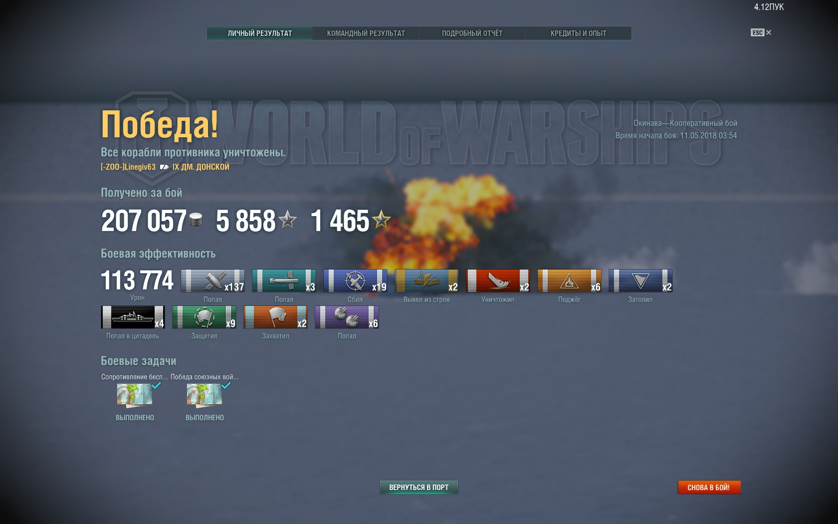 10 843 [OMSK] Linegiv63 Старший бета-тестер, Коллекционер 13 115 публикаций 24 222 боя Жалоба #31 Опубликовано: 17 июл 2018, 04:36:15 Сегодня в 09:12:43 пользователь AresZT сказал: А разработчики то хоть играли в своем коопе который внедрили?За нанесеный урон там и в рандоме,разница большая как в кредитах так и в опыте,следовательно качаешся быстрее,в коопе денег и опыта копейки а учиться там нечему.Просто надо так сказать "папок статистов" раскидывать равномерно по ОБЕИМ командам и тогда думаю многие проблемы решились бы сами,но это не суждено видать По последнему я с вами соглашусь кстати. А вот по коопу. У меня много боёв в коопе и в Операциях (кстати, тоже отличная штука). Более того, очень часто вижу там фиолетовых статистов. Интересно почему? Если хорошо играть, то и в коопе и в Операциях можно неплохо фармить опыт и кредиты, причём бомбить не будет. Так, немного первых попавшихся скринов в подтверждение Скрытый текст 2 Рассказать о публикации Ссылка на публикацию