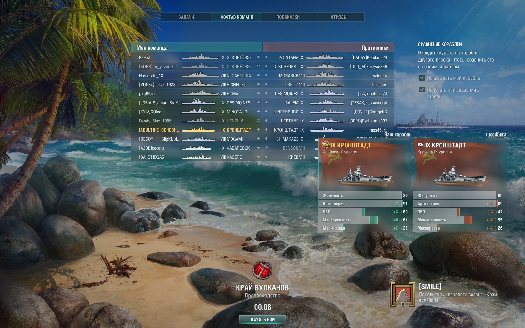 183 Lambert81 Старший бета-тестер 266 публикаций 4 985 боёв Жалоба #702 Опубликовано: 13 дек 2018, 08:49:33 Сегодня в 01:13:38 пользователь OlivierLevasseur сказал: Ага это кстати в тему ИДЕИ что Крон не влияет на бой....эти 2,5 мульта Дамажки не получает кто то из союзников. Спору нет, и в них бы не всё залетело. Но и им всё равно легче...Также стараюсь на нём играть агрессивно..Иду к точке всегда ...вражеский эсм чаще всего просто сваливает из засвета, но заодно и с точки тоже. Катаю с модернизацией на РЛС успеваю чаще всего два раза сунуть снаряд другой...Это единственный корабль у меня в порту чей процент побед свыше моих средних 55...Аж целых 61 :) Хотя дамаг по 70к и фрагов 0,9...но и боёв 385. Его настолько "обласкали" тут и вододелы, что его реально не воспринимают всерьёз. Перед ним торгуют бортами, с лозунгом..ерунда 900 переживём :) ну Раз ну два, а на 3-ий залп тысяч двадцать отлетело. Крон как раз в отличии МУСАСИ влияет на бой ещё как...потому что среднестатистический Мусаси в нашей игре трётся у своей базы. У меня складывается ощущение, что мы играем в разные игры. Скажи, много у вас боев, где вы доблестно потонули, стянув на себя форус, а по выходе в порт удивленно увидели победу по итогам? Или хотя бы, пока вы там впитываете урон, ваша команда топит на вашем фланге врага за врагом? Сколько эсминцев было уничтожено по итогам вашего рлс или выдавливания их с точки? Не своих, врага. Я за 30+ боев за последние два дня не видел ни один крейсер или линкор, который бы торговал бортом передо мной. Как только видят меня или понимают, что я присел на них, сразу в ромб. Нет, вру, был один (1, АДЫН!!) ДД, который упорно, залпов 5 торговал бортом. На 6 залп поймал на 30к и ушел в порт. НО!!! 6 - (шесть!! ШЕСТЬ!!!) залпов = 108 секунд или полторы минуты, при этом что все эти 6 залпов не были постоянно по нему, он заходил за острова, где-то разворачивался, итого минуты 4 жил до момента, когда ушел в порт. Повторю 6 (ШЕСТЬ) залпов в борт. С накрытием. Опять же, я скажу, для тех, кто плохо читает или для тех, у кого с сарказмом и юмором плохо - корабль хорош для фарма. Серебро фармить только в путь. Но среднестатистический игрок должен понять, что корабль только для избранных, не для всех. Он хардкор. Он не прощает ошибок и он очень зависит от ВБР. А про аксиому, что в хороших руках любое корыто играет - если это еще кто-то не понял - об этом можно не говорить, потому это или понимаешь или нет. Сегодня в 04:33:24 пользователь HE_OCHOBHOU сказал: обереги вас Нептун и ВБР от подобных союзников с высоким ЧСВ, способных забить на свои обязанности и упороться в СВОЁ ХАЧУ!!! ни разведки, ни засветов, ни помощи от эм не было. все делал сам, светил, находил, топил. а в конце еще был и послан! https://replayswows.ru/replay/21976#stats жаль подобного гнуса много. таких я обычно заказываю противникам и сливаю, оставляя без помощи. после смены руководства в том колхозе, остались там одни отъявленные негодяи. Поделитесь, как можно кого-то заказать чужой команде? И сколько это будет стоить?:) Вот, типичное влияние на бой. Линкоры стоят в далеке. Крейсер делает линкоровское дело. Если бы не *** на Ямато, что отдал мне 82к - бой был бы ни о чем. Ну и мне повезло, что в меня вошла только одна цитадель. А так, вылез вперед, собрал 1кк урона и свалил назад. И потом опять приперся вперед, заставил болото задвигаться, пока "снайпера из кустов" лупили по бортам. Ну и большое спасибо эсминцам с других точек, что уто