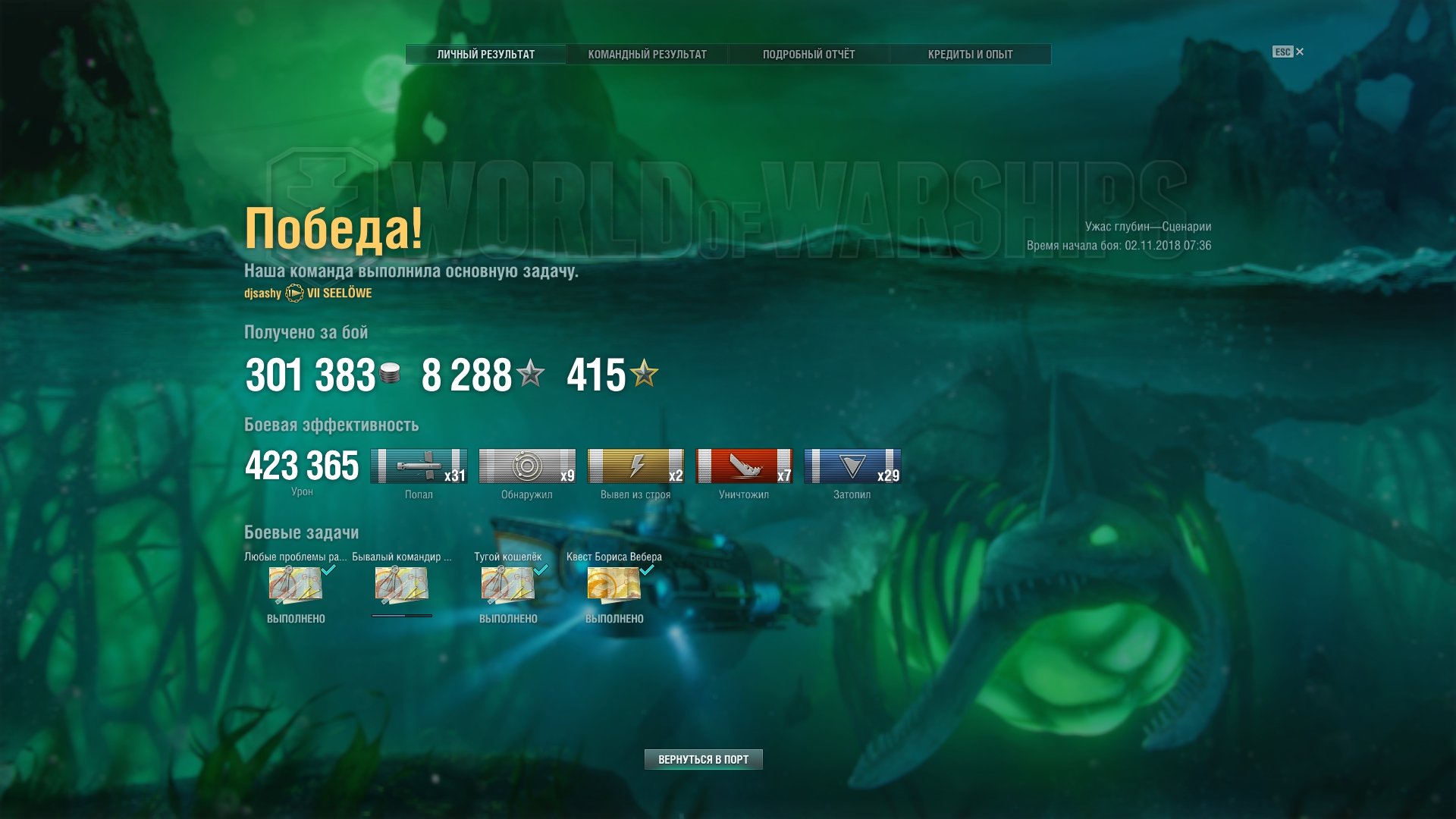 5 474 [9-MAY] Esq_SV Участник, Коллекционер 9 966 публикаций Жалоба #38 Опубликовано: 2 ноя 2018, 11:21:26 (изменено) Сегодня в 13:48:52 пользователь iD0LLM4STER сказал: Ничего удивительного... просто все бегут за фрагами, и никто не бежит за Замком и Башней. Приходилось лично идти на жертвы в результате 400к урона, 7 шкур, замок и все туррели... короче только с 5-ой попытки. Сначала было 3 звизды, потом 3 раза по четыре... звизды, потом зае... надоело и лично веду конницу в бой. Я лично бегаю за уроном ... пальнула носовыми, утопила нет не важно, лечу дальше, есть кормовые, пальну по отстающему супостату, не заморачиваюсь на добивании, есть кому добить ... Чем больше попаданий тем лучше ... только что удалось 8 супостатов утопить швыряясь торпедами во все стороны, Распутин схлопотал 8 торпед ... Главное НЕ ТОРМОЗИТЬ, но и при атаке Распутина часто вообще ход сбавляю до четверти, в упор пакеты отправляю ему в борт, разгон у борта, нырок и кормовыми ... Всё уж делается как на автомате .. Изменено 2 ноя 2018, 11:28:04 пользователем Esq_SV 1 1 1 Рассказать о публикации Ссылка на публикацию