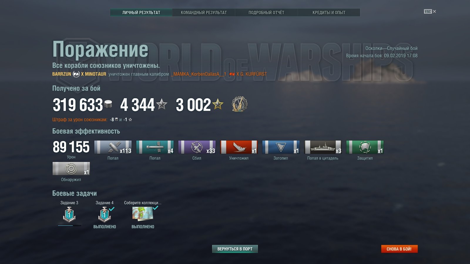 • Учитываются бои, начавшиеся в период с 09.02.2019 00:00 (МСК) до 10.02.2019 23:59 (МСК).