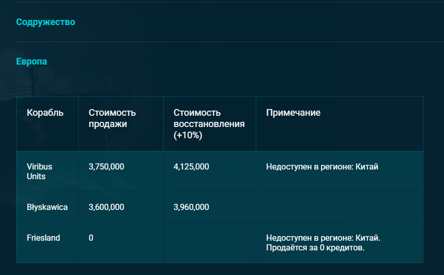 Стоимость продажи прем кораблей