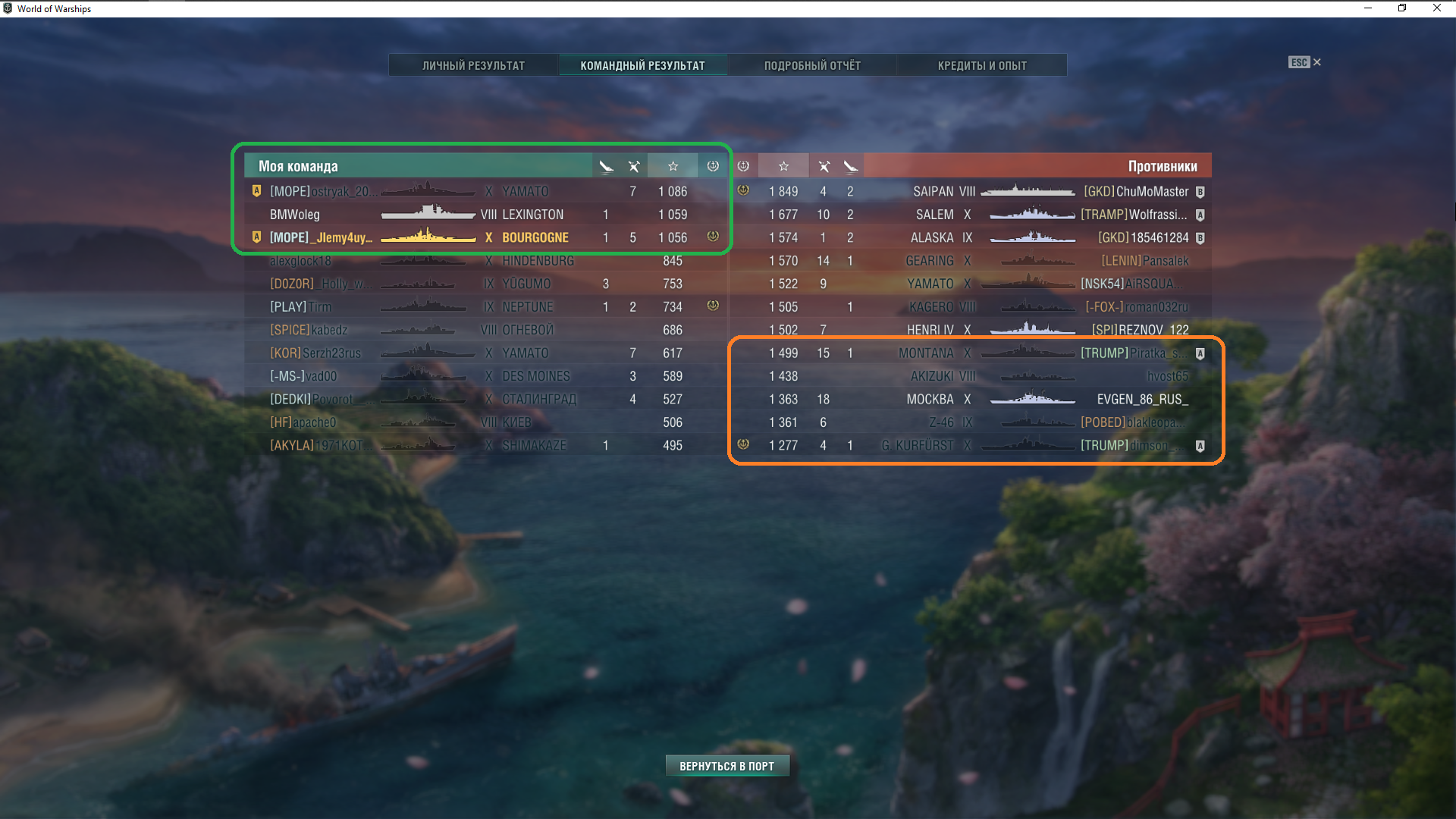737 [MOPE] _JIemy4uy_GoJIJIaHDeC_ Участник 195 публикаций 7 312 боёв Жалоба #48 Опубликовано: 15 май 2019, 05:47:26 (изменено) В 23.03.2019 в 12:55:45 пользователь Rem495 сказал: Угадайте, какие два корабля уничтожил великий флотоводец из клана ТРАМП на Конкероре из красной команды?))) Наши трамповцы мужественно оберегали тылы вначале боя, слив точки и развернувшись бортом к пришедшему соклану. Ямато стрелял вдаль игнорируя красного коня соклана в 7 км и мужественно пал первым. наш Конкерор не отворачивая борт пал вторым. Бой просто слили. Проблема даже не в этих негодяях испортивших игру своей команде, подобного рода грязные делишки возможны там где они возможны..... Вопрос про выход на 1, 2, 3 возникает чуть ли не с основания игры, но увы, он не в приоритете. Так что, Господа и далее будем лицезреть подобных трампов портящих игру всем нам. 20190323_121209_PJSD598-Black-Asashio_38_Canada.wowsreplay Чё-чё? Флотоводцы клана Трамп? Не-не, не слышал. А вот раков от трамп, получающих от наших ребят по щам в рандоме - всегда пожалуйста! Ну например, скрин с нашего сервера: Что-то мне подсказывает, это эти ребята в клановых играют с "запрещённым допингом", раз у них там такие шикарные показатели. Ибо в рандоме мы их топим почти всегда! Они ещё и договорняки устраивают?! Мда.... С игроками этого клана лучше вообще за руку не здороваться...Не хочется пачкать! Изменено 15 май 2019, 05:54:29 пользователем JIyambdazont Рассказать о публикации Ссылка на публикацию