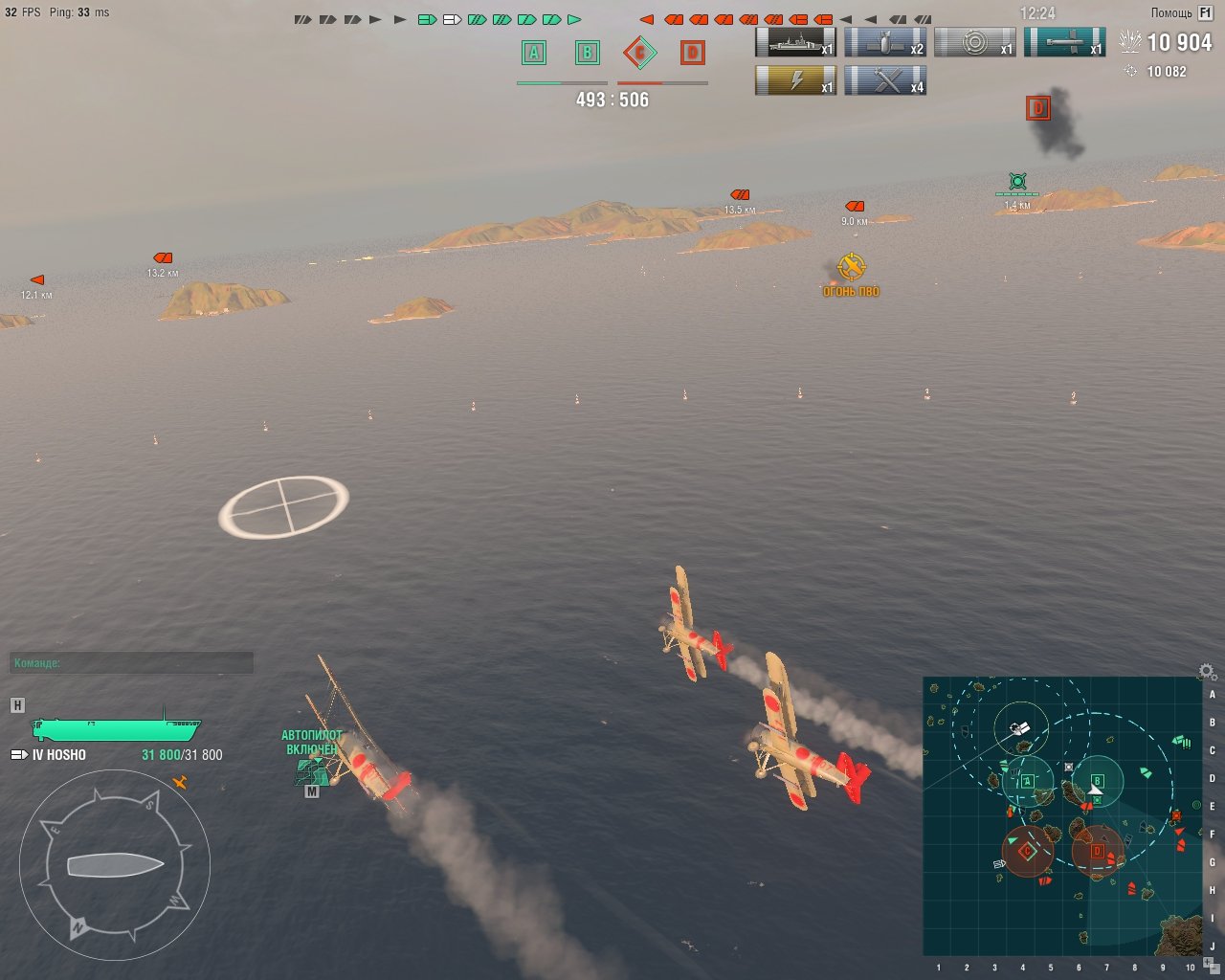 Около островов в каждом бою приходится переходить на ручное управление авиком - иначе шанс уткнуться в остров или начать обходить остров со стороны атакующего врага (а не той, куда указал) слишком велик.