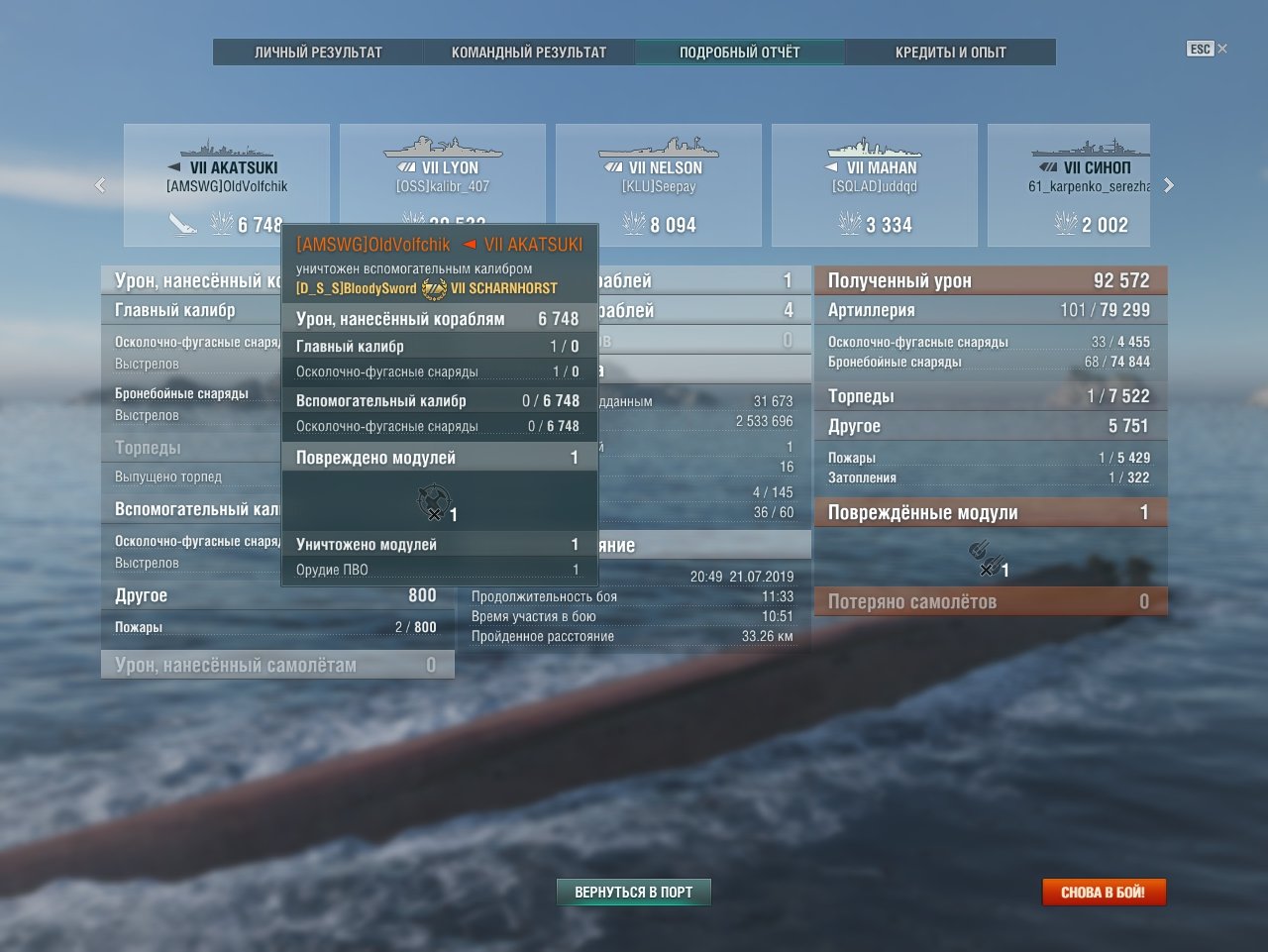 1 060 [NEON] BloodySword Участник, Коллекционер 1 668 публикаций 19 662 боя Жалоба #385 Опубликовано: 21 июл 2019, 18:21:37 Получил очень интересное сочетание наград. Урон от попадания с ваншотом из ГК засчитали на счёт ПМК ПМК с перком РуПМК тоже вёл огонь, но эсминец был утоплен главным калибром. Или я чего-то не понял или это какой-то баг... Скрины прилагаю, может пригодятся разработчикам: Рассказать о публикации Ссылка на публикацию