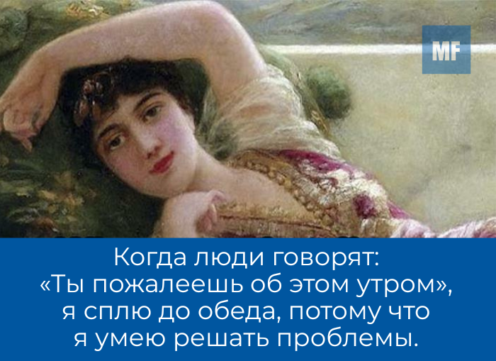 3 324 [HA7AH] Galogen_1 Бета-тестер 2 465 публикаций Жалоба #48820 Опубликовано: 1 авг 2025, 07:02:27 Сегодня в 09:57:47 пользователь Say_Alek сказал: До обеда,я сплю замечательно.До ужина-хорошо,зато всю ночь потом уснуть не могу(С). 5 Рассказать о публикации Ссылка на публикацию