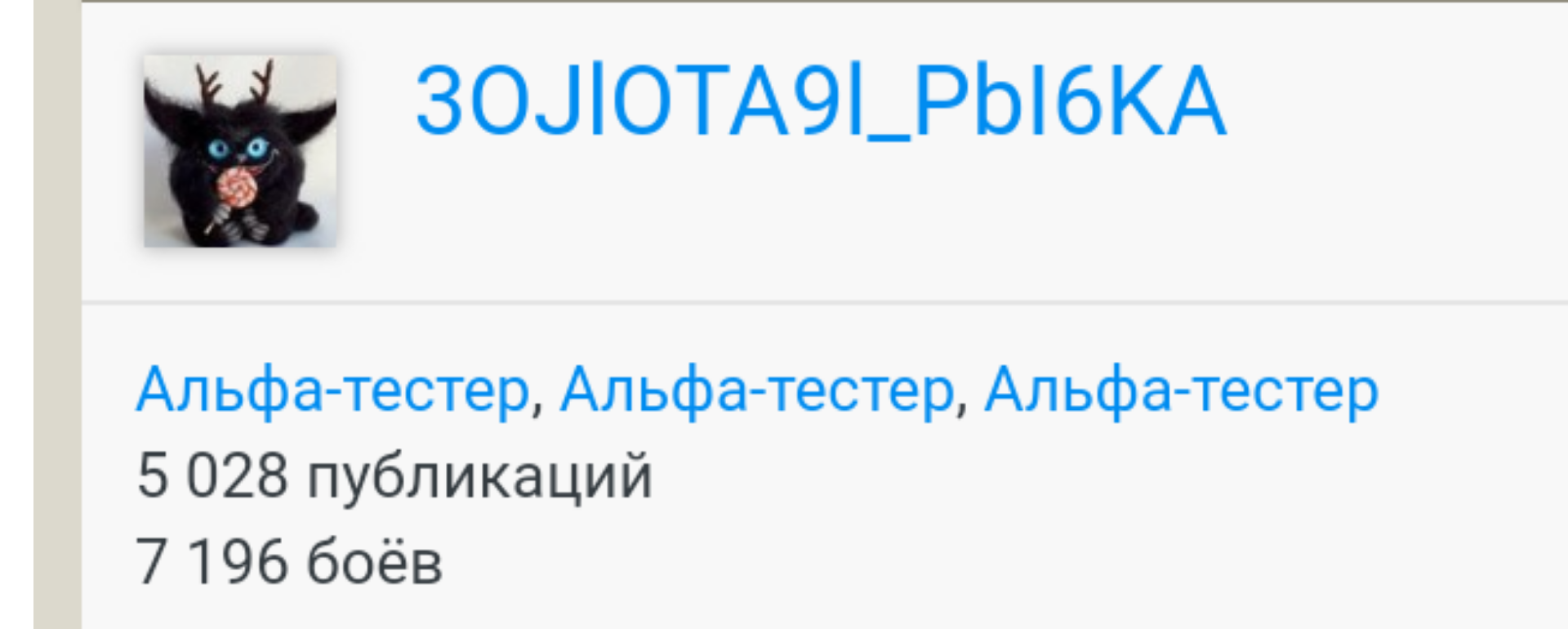 3 911 3OJlOTA9l_PbI6KA Участник, Альфа-тестер, Коллекционер 4 661 публикация 14 969 боёв Жалоба #1210 Опубликовано: 4 окт 2019, 12:45:26 Сегодня в 15:36:13 пользователь Temnokot сказал: Пару дней на форуме очень весело... Трое синих штанов? Шесть раз ку! Привет. Смешно)) Сегодня в 15:37:21 пользователь LLIok0ladka сказал: С чем связано Я б сказала, но... Рассказать о публикации Ссылка на публикацию