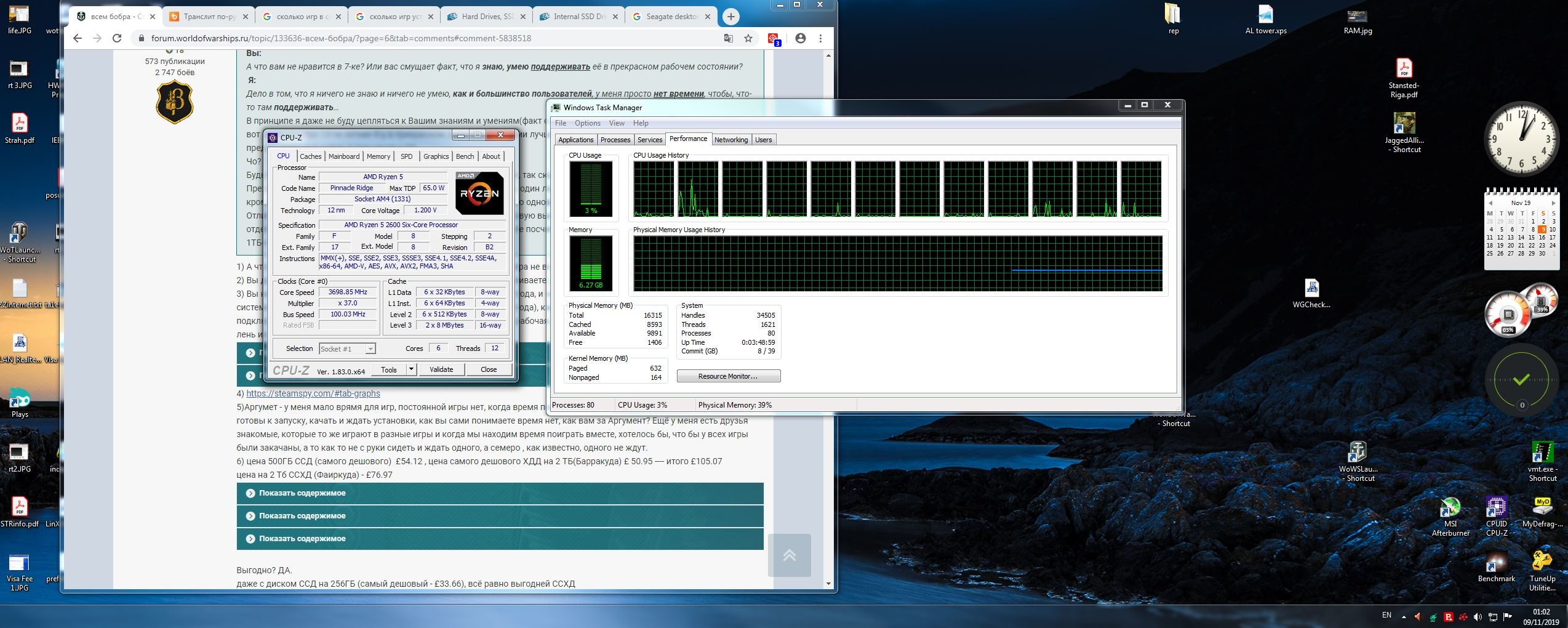 81 [OKEAH] bam79 Участник 347 публикаций 33 261 бой Жалоба #102 Опубликовано: 12 ноя 2019, 14:05:07 (изменено) В 09.11.2019 в 03:55:43 пользователь One_go сказал: 1) А что бы установить её(WOWS), надо 75ГБ и если их нет, то на этот диск игра не встанет. с чем вас и поздравляю. Да, вот такая у нас замечательная игра, требует знаний и обслуживания, всё как Вы и Ваша 15-ти летняя Винда любите.) В 09.11.2019 в 03:55:43 пользователь One_go сказал: 2) Вы до сих пор, не дали внятного ответа, зачем вы её (Винду)прерустанавливаете, если ничего с ней не случилось. Новая Винда, быстрее, чище, безопасней, конфиденциальней, и Вы удивитесь новее)), чем старая. А ещё, Вы возможно тоже удивитесь, 2х2=4. Ещё вопросы? В 09.11.2019 в 03:55:43 пользователь One_go сказал: 3) Вы не поверите, но у меня есть Phenom II X6 1090T , выпуска 2010 года, и он живой и рабочий, потому что находиться в системе , так же есть Intel i5 650 - то же живой и рабочий(то же 2010 года), каждый день включаю его, он к телевизору подключён. имею старую ВК, ХД 3870 - она вообще 2007 года, то же рабочая, есть три штуки Р9 280Х и все они работают, мне лень их продавать. Зачем Вы мне опять это пишите? Я у Вас точно ничего не куплю. В 09.11.2019 в 03:55:43 пользователь One_go сказал: 4) https://steamspy.com/#tab-graphs У Вас так хорошо, получается, кидать скрины, а тут ссылка на запароленную страницу, да ещё и антивирус ругается… очень мило с Вашей стороны. Но судя по названию сайта, это про финансы и покупки в Стиме, а не про то, что и у кого хранится на винте. В 09.11.2019 в 03:55:43 пользователь One_go сказал: 5)Аргумет - у меня мало врямя для игр, постоянной игры нет, когда время появляется, для меня удобно, что бы все игры были готовы к запуску, качать и ждать установки, как вы сами понимаете время нет, как вам за Аргумент? Ещё у меня есть друзья знакомые, которые то же играют в разные игры и когда мы находим время поиграть вместе, хотелось бы, что бы у всех игры были закачаны, а то как то не с руки сидеть и ждать одного, а семеро , как известно, одного не ждут. Отличный аргумент: времени нет, игры нет, но если(ЕСЛИ!!!)... среди ночи... друзья.... то у Вас 30+ игр наготове. Т.е. система у Вас заточена, не под повседневные задачи: включение\выключение Винды, программ, сессионных игр, прохождения новых синглов и т.д., а под то, что может и не произойти? Прелестно, просто прелестно. В 09.11.2019 в 03:55:43 пользователь One_go сказал: 6) цена 500ГБ ССД (самого дешового) £54.12 , цена самого дешового ХДД на 2 ТБ(Барракуда) £ 50.95 ---- итого £105.07 цена на 2 Тб ССХД (Фаиркуда) - £76.97 Фунты стерлингов? Всё чудесатей, и чудесатей.) Мне как-то рубли ближе: 2000 Gb HDD - 3600 руб. https://market.yandex.ru/product--zhestkii-disk-seagate-st2000dm008/130084187/offers?local-offers-first=0&how=aprice 240 Gb SSD - 2200 руб. https://market.yandex.ru/product--tverdotelnyi-nakopitel-crucial-ct240bx500ssd1/175944014/offers?local-offers-first=0&how=aprice 480 Gb SSD - 3300 руб. https://market.yandex.ru/product--tverdotelnyi-nakopitel-crucial-ct480bx500ssd1/175939018/offers?track=tabs&local-offers-first=0 2000 Gb SSHD - 5300 руб. https://market.yandex.ru/product--gibridnyi-disk-seagate-st2000dx002/14209125/offers?local-offers-first=0&how=aprice В 09.11.2019 в 03:55:43 пользователь One_go сказал: Выгодно? ДА. даже с диском ССД на 256ГБ (самый дешовый - £33.66), всё равно выгодней ССХД Отсюда следует: 2000 Gb SSHD(5300руб.) – 2,65 рубля(за Gb) 240 Gb SSD(2200руб.) + 2000 Gb HDD(3600руб.) – 2,58 рубля 480 Gb SSD(3300руб.) + 2000 Gb HDD(3600руб.) – 2,78 рубля Т.е. система с 240 Gb SSD даже немного дешевле SSHD, а с 480 Gb SSD дороже, аж на 260 руб. в пересчёте на 2000 Gb SSHD. Даже не могу себе представить, 260 руб. это сколько в фунтах? )) В 09.11.2019 в 03:55:43 пользователь One_go сказал: а мою связку нет смысла считать моя связка боле 6 лет назад куплена, 2178 включений системы , свыше 5000 рабоч