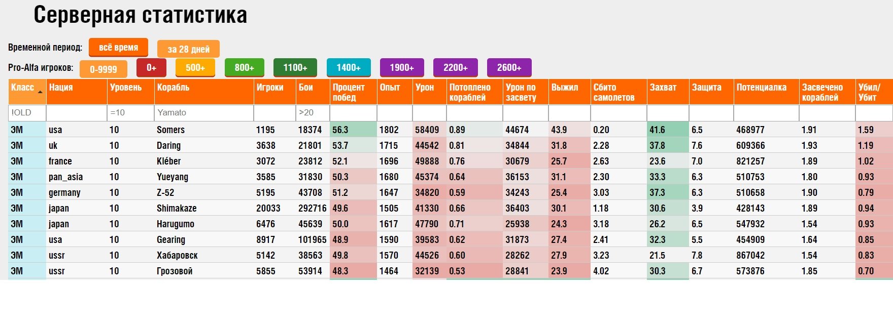 141 anonym_NFxqfxPrWf7r Участник 132 публикации Жалоба #80 Опубликовано: 19 фев 2020, 10:36:27 (изменено) В 18.02.2020 в 10:42:51 пользователь Olga_Odessa сказал: А в чём смысл требовать торпеды чистому артиллеристу? Это видимо те же люди, которые жаловались на короткие торпеды Подвойского, Гневного и т.д., докачались до Хабаровска Ну мой собеседник хочет вернуть Хабу до состояния когда он был один из лучших ДД не только среди эсмов, но и в игре. А тогда и были эти 10 км торпеды В 18.02.2020 в 10:52:31 пользователь BOEHMOP_ сказал: Во первых вы взяли фиолет (и то там отрыв смешной). Именно что я взял фиолет. Ибо в арт эсминцы смог исключительно фиолет. Все арт эсминцы, без исключения, вместе с Блискавицей показывают хорошие результаты исключительно в фиолетовых игроков. Поэтому говоря о арт эсмах и нужно сравнивать фиолет. Это как колесники в танках. Посмотришь на среднее- все ужасно, откроешь фиолет и можно смело бежать кричать что бы нерфили Раз уж Хабаровск такой плох. Какой бы апп Хабы Вас устроил бы. И какие ВАШИ показатели урона на Хабаровске Вас устроят в сравнении с тем что есть сейчас Изменено 19 фев 2020, 10:56:14 пользователем anonym_NFxqfxPrWf7r Рассказать о публикации Ссылка на публикацию