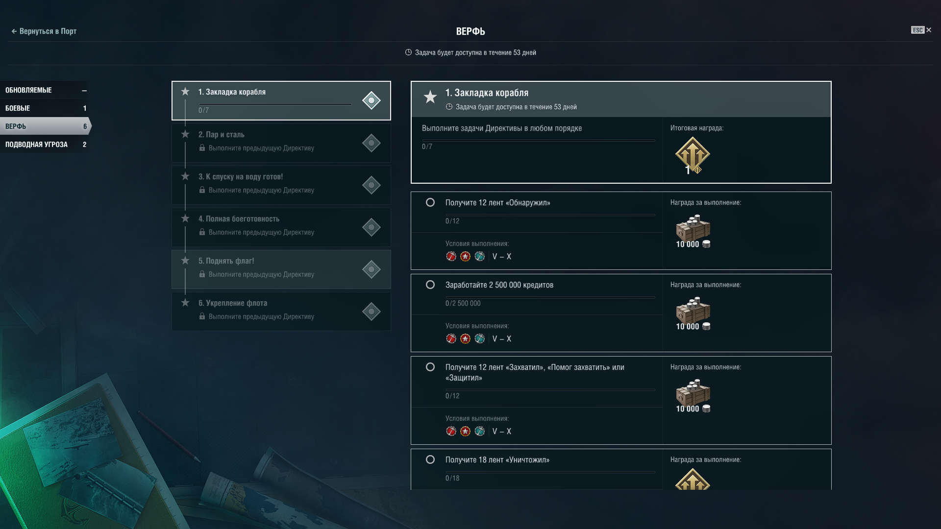 • Добавлены боевые задачи с условием «или». В таких задачах для получения награды нужно выполнить одно из двух условий. Пример: «заработать 10 000 ед. чистого опыта» или «уничтожить 10 кораблей противника». Таким образом, игроки смогут выбирать, какое из условий им больше нравится, и выполнять его на подходящих кораблях.