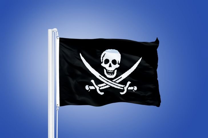 • Флаг с черепом и костями прочно ассоциируется с пиратами, хотя они использовали и другие символы для устрашения моряков, могли вообще не поднимать знамя или вывешивать флаги любой страны, чтобы запутать противника. А вот символика «Веселого Роджера» сначала не была зловещей. Пираты позаимствовали ее у обычных моряков, где она означала, что кто-то на корабле умер. Подобный значок капитан ставил возле имени погибшего в корабельной книге. Для пиратов же «Веселый Роджер» стал знаком короткой, но насыщенной жизни, которую они для себя выбирали.
