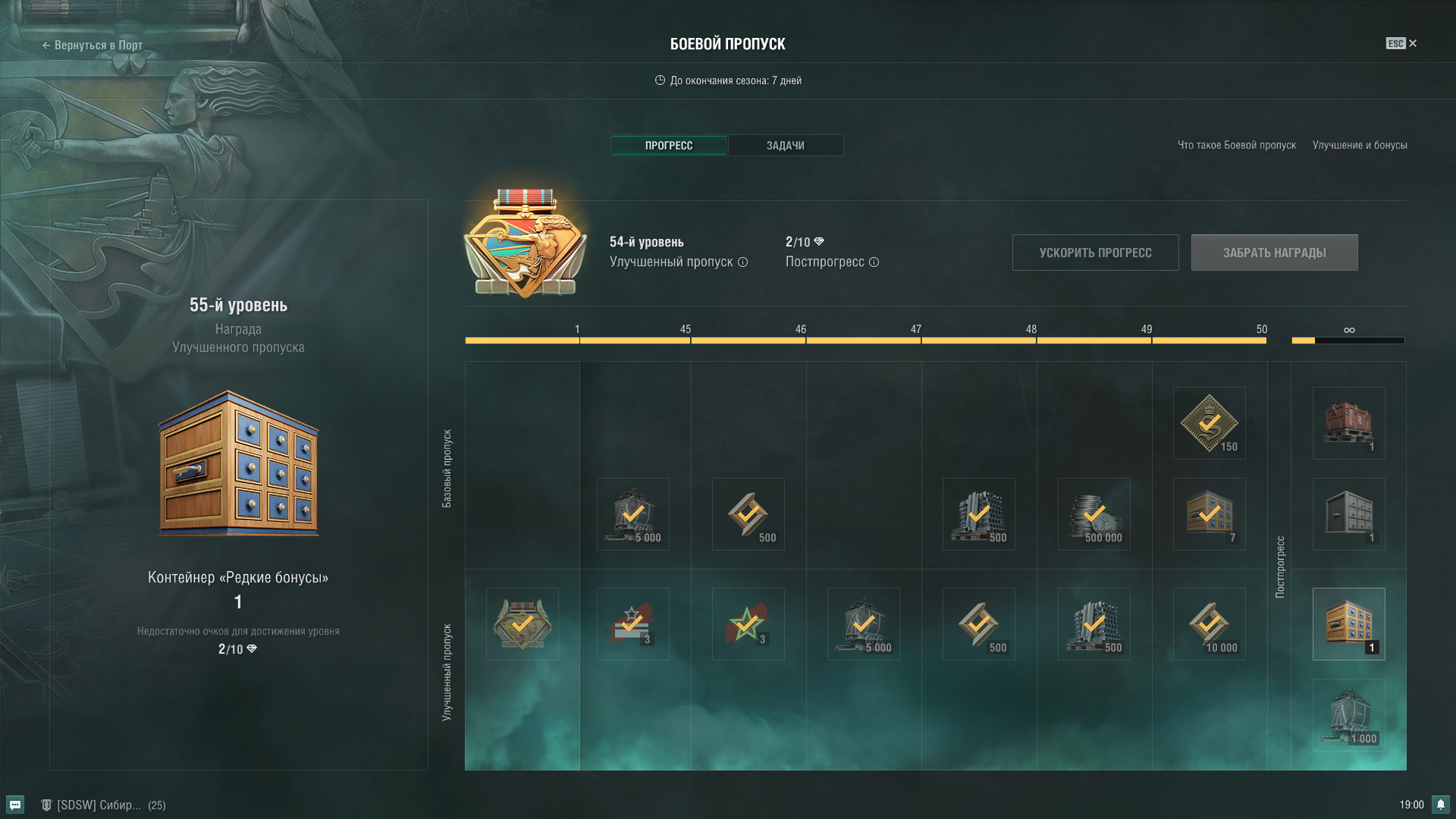 2 [SDSW] Sibbizon_1 Участник 3 публикации Жалоба #34 Опубликовано: 15 мар 2023, 12:06:55 Может быть я чего-то не понимаю, но при выполнении постпрогресса Боевого пропуска мне выпадают каждый раз 3 контейнера (Стандартные бонусы, Больше сигналов, Редкие бонусы). Но вот Уголь в 1000 ед. не вываливается никогда, хотя он там имеется. В чем проблема? 1 Рассказать о публикации Ссылка на публикацию