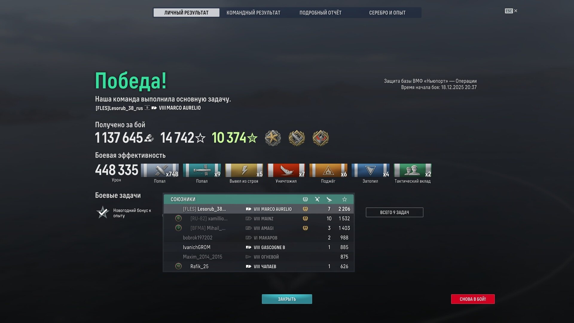 В принципе, я бы сказал, что бой сложился удачно: 4 из 5 доп задач выполнили. Могли бы и транспорт потерять и один из трех линкоров не добить.