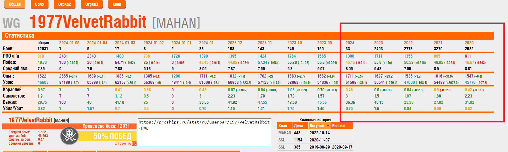 Опять же, краткий взгляд на общие/средние показатели используется только в жарких диалогах по факту слитой катки и выяснений кто кому что и как шатал в связи с этим, а нормальный КК (а для чего ещё по сути нужна стата?) и по кораблям просмотрит и по годам и т.д. и т.п.