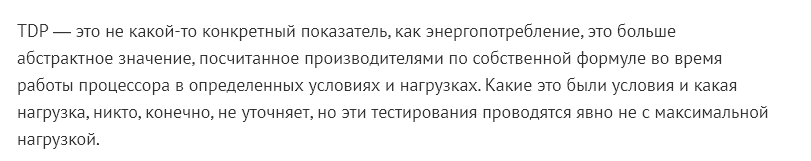 Не, не убедила. Производителям имеет смысл тестировать энергопотребление при макс. нагрузке чтобы потом не попадать на гарантийную замену. Разумеется делается это при штатных настройках, при разгоне или разблокировке лимитов потребления энергопотребление может вырасти и превысить расчетные значения. Но это пользователь делает уже на свой страх и риск.