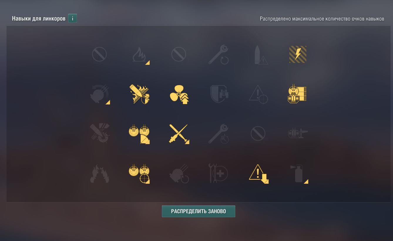 В итоге остановился на таком билде, талант в первой полке и во второй башни опциональны, ещё заметил, что он очень жирно фармит опыт. То есть он у меня топ 2 по рекорду опыта и топ 1 по среднему опыту у кораблей с боями больше 10. Связываю это с тем что он рлской ловит эсмы, ну и люто им накидывает сам же из пмк.