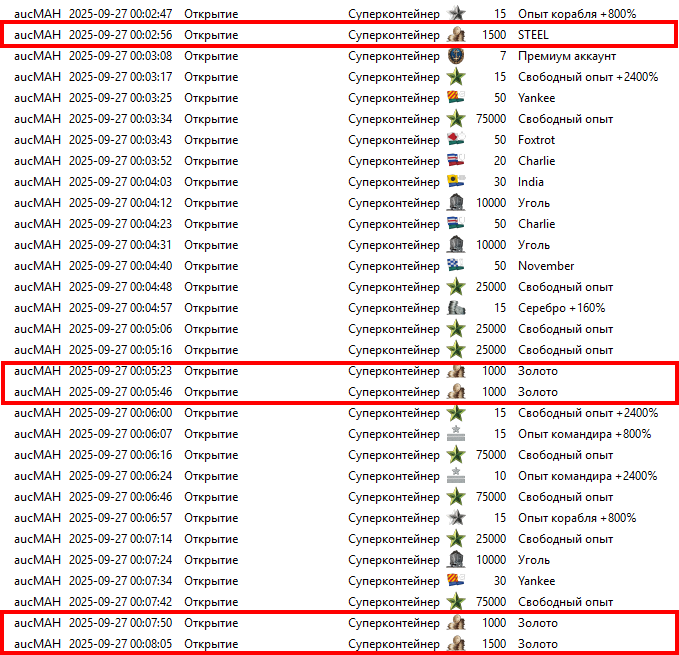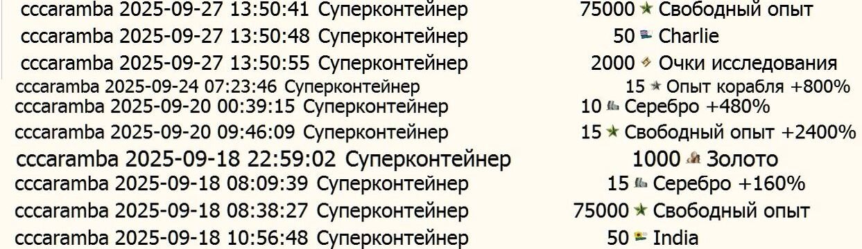 75 691 [9-MAY] aucMAH Старший бета-тестер, Участник, Коллекционер 25 315 публикаций 28 362 боя Жалоба #18 Опубликовано: 28 сен 2025, 10:42:33 Полез и я в эту "волшебную" программку. Уж дюже я любопытен не в меру... Показала только мою разовую акцию по открытию. Так то уже давно было на складе 100 СК и они во время поисков белых камушков автоматически открывались. А тут, увидев, что до гаранта осталось три десятка ящиков и решил крутануть. И вот такой список содержимого (подчеркнул самое ценное для меня): Скрытый текст 3 Рассказать о публикации Ссылка на публикацию