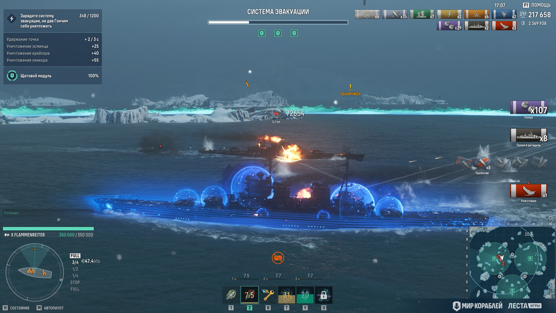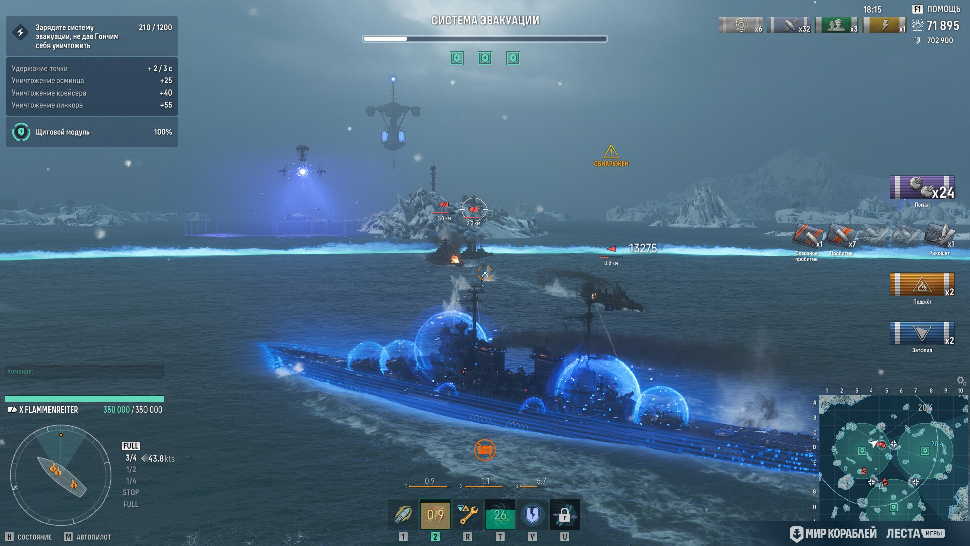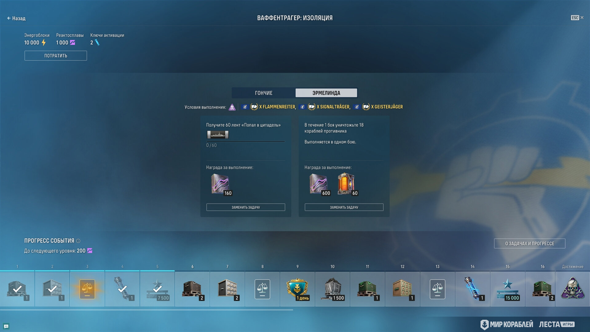 1 114 LESTA_MK Администратор 360 публикаций Жалоба #1 Опубликовано: Вчера в 10:00:00 Искру прогресса затушить Их гонит дикий страх. Но встретят в ледяной глуши Мой громовой раскат! Одна против вас всех... Могущественная секретная организация Альянс получила странный сигнал со своей заброшенной базы «Форт Эребус», находящейся на островах Гримсби в Южной Атлантике. Там был зафиксирован огромный всплеск странной энергии. Разведать обстановку отправили Джеймса Конрада — опытного оперативника этой организации и коммандера ВМС США. Причины всех происходящих на заброшенной базе аномалий были неизвестны, но одно руководству Альянса было понятно точно — если этот кто-то или что-то успеет выйти за периметр островов Гримсби с находящимися на базе документами, то всю организацию ждёт конец. Вместе с Гончими — элитным отрядом наёмников Альянса — Конрад отправился к базе. И там его ждал максимально неприятный сюрприз в виде Эрмелинды Юнг — дочери известного (скорее даже печально известного) инженера Макса фон Кригера. Она решила продолжить дело отца, дать отпор Альянсу и обнародовать найденные ей на базе секретные документы. Поскольку яблоко от яблони недалеко падает, гений Эрмелинды позволил ей подготовиться к встрече с кораблями-Гончими. Используя ресурсы заброшенной базы, свои чертежи, наработки флота Альянса и технологии семьи Кригеров, она создала три совершенных боевых корабля, оснащённых передовыми системами на основе электромагнетизма и квантовых феноменов. И если на стороне Гончих — их количество и вера в правое дело, то на стороне Эрмелинды — безумная мощь созданных ею кораблей. Столкновение неизбежно, кто прав — неизвестно, а кто выйдет победителем — непонятно. Чью же сторону выберете вы? А впрочем, вы можете попробовать обе и решить! В этой статье мы расскажем обо всех деталях временного типа боя «Ваффентрагер: Изоляция». Правила Начало: 1 окт., 05:00 МСК Окончание: 27 окт., 05:00 МСК Тип боя будет доступен в любое время в течение дня. Формат Шесть Гончих Альянса против одного корабля Эрмелинды. За Альянс можно играть в составе отряда. Максимальный размер отряда — 6 игроков. Остановимся подробнее на каждой из сторон конфликта. Эрмелинда Юнг Цель Зарядить систему телепортации «Фазовый мост» и сбежать от Альянса. Как достичь цели На карте размещены три генератора, аккумулирующие заряд системы телепортации «Фазовый мост». Управление каждым генератором осуществляется через захват соответствующей контрольной точки. Для ускорения победы Эрмелинде требуется сохранять под своим контролем генераторы, ведь каждый генератор не только копит заряд, но и усиливает щитовой модуль её корабля. Уничтожение кораблей Гончих также ускоряет зарядку «Фазового моста». Целевое значение заряда системы — 1200 единиц. Заряжается система, как мы сказали выше, двумя способами. 1) Уничтожение Гончих. Каждый потопленный корабль Альянса увеличивает заряд системы: +25 ед. за уничтожение эсминца; +40 ед. за уничтожение крейсера; +55 ед. за уничтожение линкора. 2) Захват и удержание контрольных точек. Каждая контрольная точка генерирует 2 единицы заряда системы в 3 секунды. Захваченные Эрмелиндой генераторы также поддерживают её щитовой модуль, который поглощает урон. Если под контролем Эрмелинды все три точки, то щитовой модуль её корабля заряжен на 100% (то есть у её кораб
