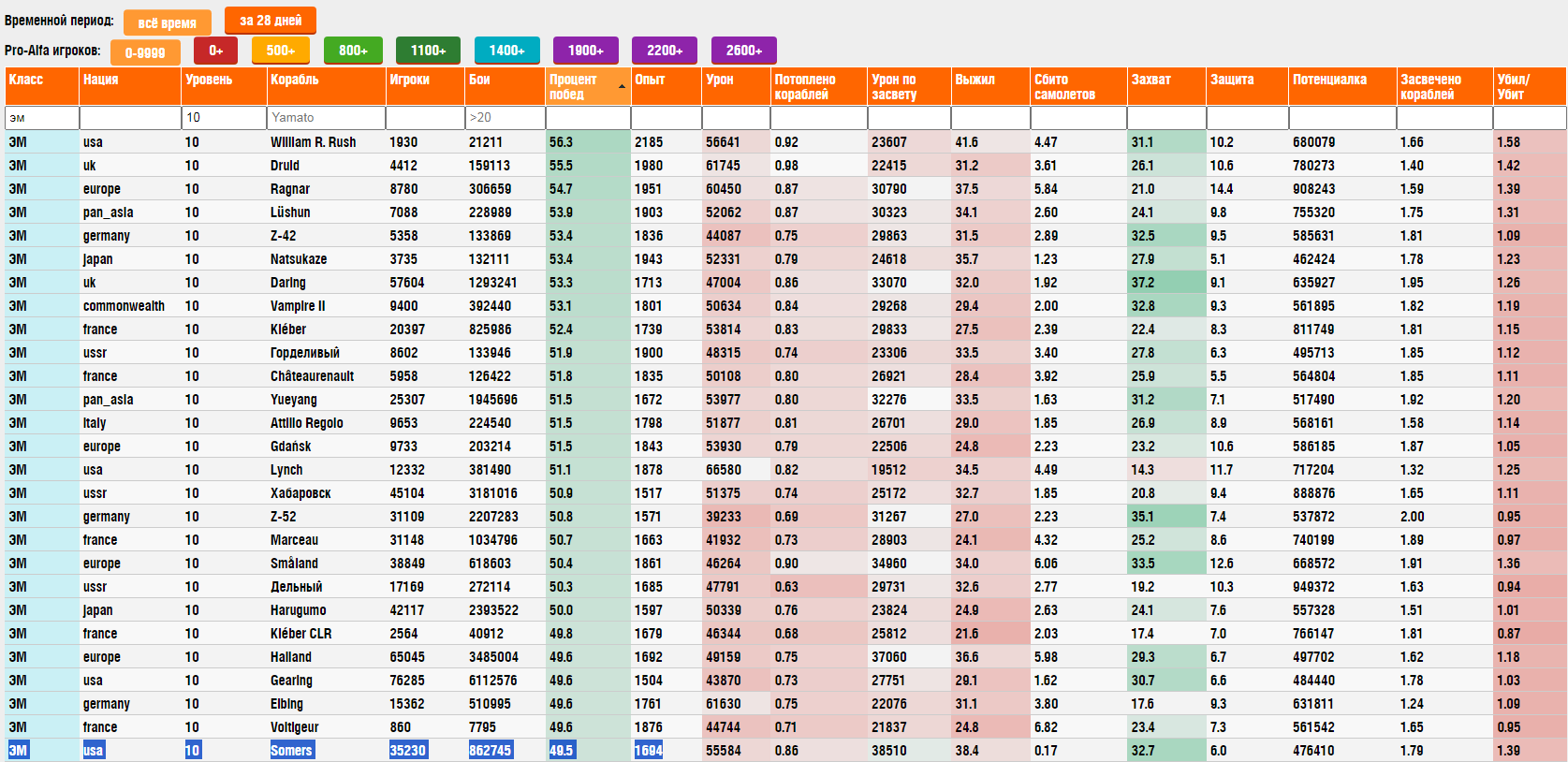 Как она изменилась за прошлый год с отключением поломки ПВО, уничтожением торпед ПЛО/ГБ... Какова динамика по среднему опыту и урону?
