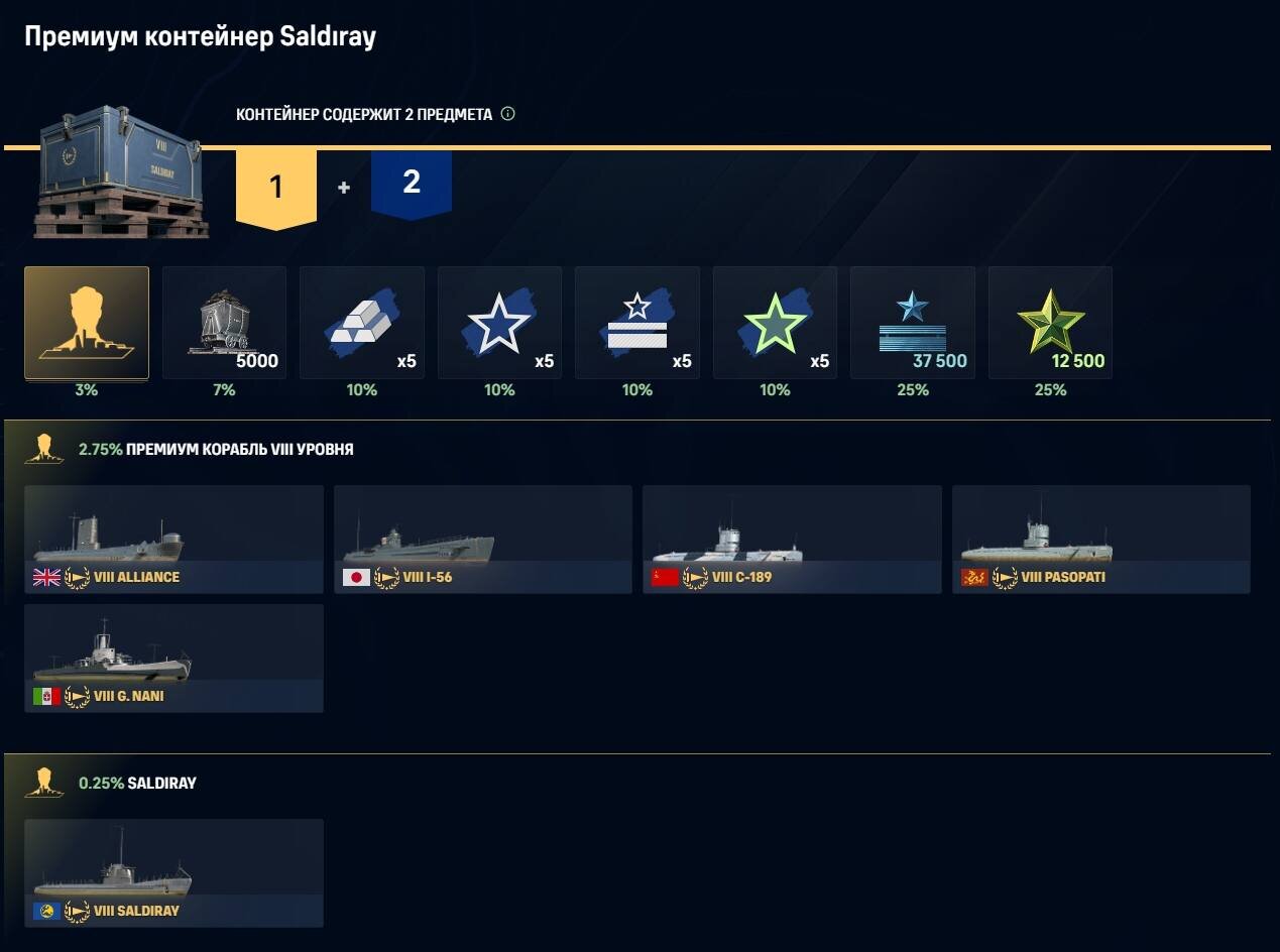 1 498 [EZI-V] Cadamosto Старший бета-тестер, Коллекционер 2 333 публикации 24 243 боя Жалоба #4 Опубликовано: 21 мар 2026, 15:41:34 Сегодня в 18:34:14 пользователь OrdoXenos_2025 сказал: но когда я его открыл А кораблик и не должен был там быть! В нём вы можете найти одноимённую подлодку Европы, несколько её «коллег по подводному цеху», а также другие награды Рассказать о публикации Ссылка на публикацию