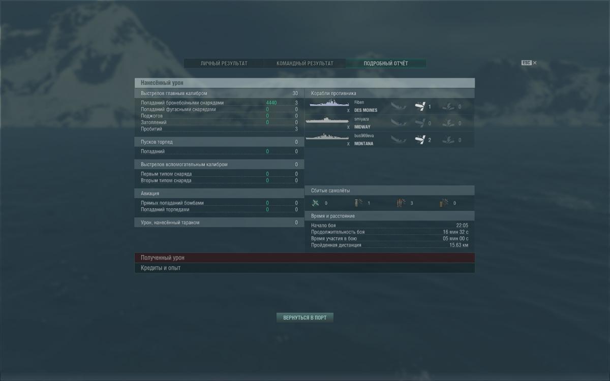 Отдельно спасибо вражеским ЛК, которые дзынькали мне в ромбик, вместо того, чтобы сжечь фугасами . Уж Ямато+Монтана+Амаги превратили бы меня в плавающий костер буквально за 2 залпа.