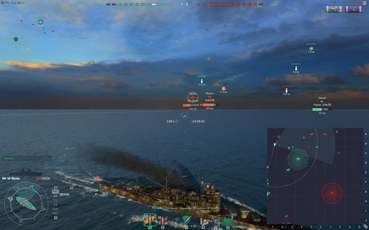 Пример: бой на Ледяных островах. Встречка. У нас есть 10й авик, у врага 9й авик, 10й эсминец. Вроде бы все в нашу пользу. Наши линкоры вперед не идут, стоят где реснулись или же сдают задом к краю карты. Через 4 минуты "бодрого корабельного стоялова" я понимаю, что надо что-то делать и иду вперед на Могами. Пользуясь малой заметностью, прохожу на точку и поджимаюсь под айсберг. То есть, чтоб меня достать, нужно пойти вперед и подставить борта нашим линкорам. Вражеский Орлеан, пришедший меня "выкуривать", получил в борт 2 веера и утонул, однако меня постоянно атакуют вражеские самолеты+шимаказе закидывает торпедами издалека. В итоге я утонул, а наша команда тем временем так и стояла на респе, под обстрелом. Ничья - наш авик не успел всех утопить, наши линкоры погибли бесславно, не сделав ничего (200-300 очков по итогам боя). Мое 2 или 3 место за утопленный Орлеан(не помню уже точно).