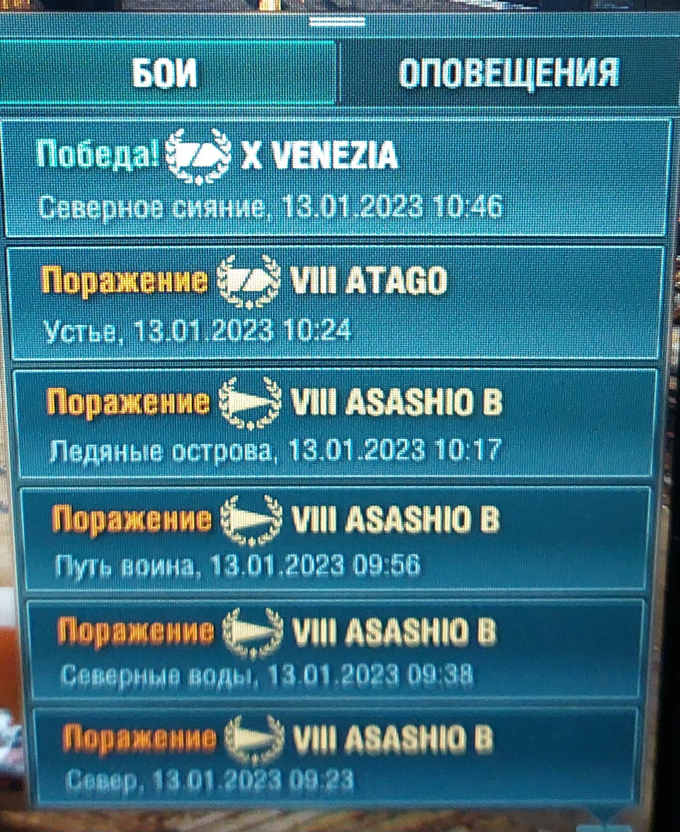 Где же мой приятный собеседник Dedushka_Pokemona? С утра покатал с не своего компа,такие скрины некачественные. Сегодня какое объяснение будет,типа пятница 13-е,наступающий Старый Новый Год или другая причина.200 боев на эсминце были победы 58%,а затем вот такие сливы, причем, уже 6 сутки подряд. Твоя команда лопается как мыльные пузыри,ты можешь быть в топе по урону, весь бой *** валять, результат будет одним..С какого болта на этом эсминце активирован специальный режим турбо сливов и поражений?