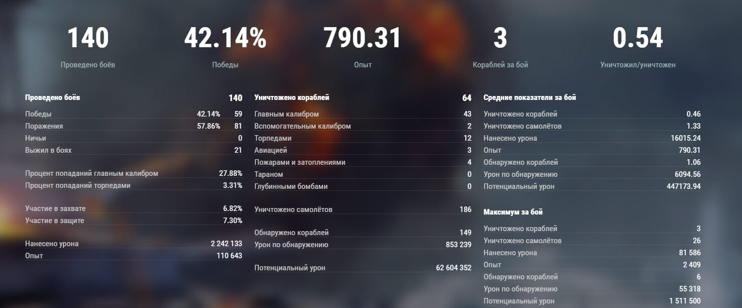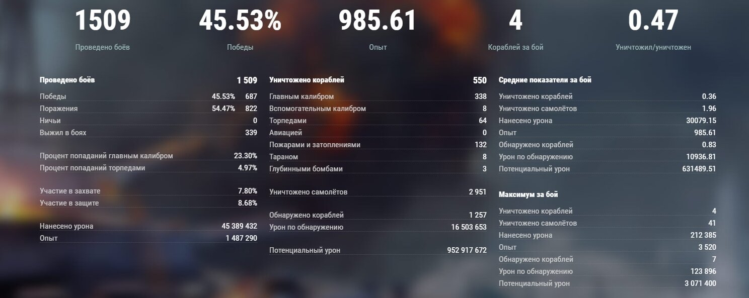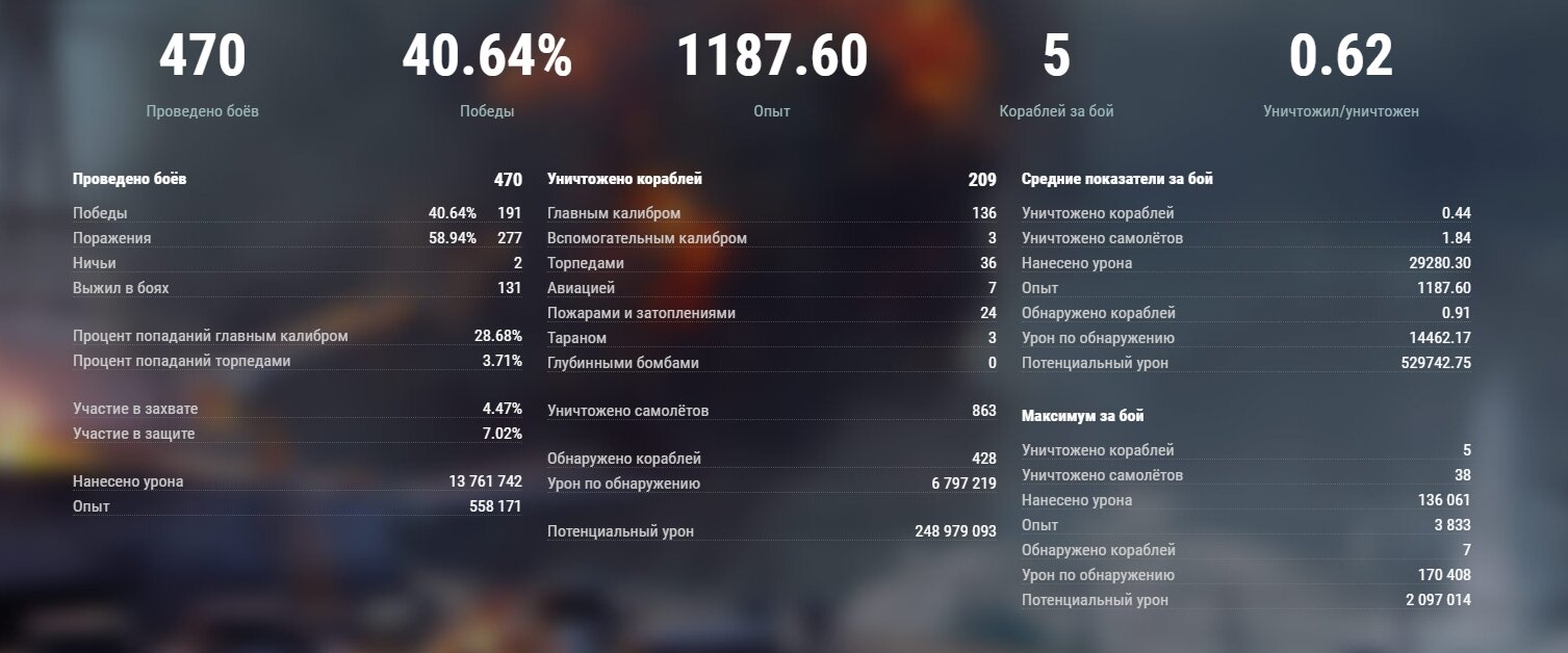 P.S. Кстати,на Атаго 54% побед,750 боев,но и на нем стало невозможно катать, легко можно повторить участь эсминца.