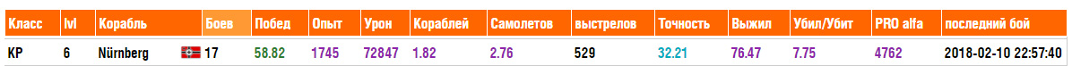 16 780 anonym_SWk16o1c9GvH Участник 8 821 публикация Жалоба #1777 Опубликовано: 17 фев 2018, 11:40:16 Нюрчик был последним прокачиваемым крейсером 6 уровня, на котором я еще не играл. Пройден он был под флажками и с подарочным премиумом всего за 17 боев. Было бы чуть больше побед - было бы еще быстрее. В целом, результаты получились неплохие, я ожидал, что будет хуже: Несмотря на удовлетворительную статистику, меня корабль не впечатлил, продолжать играть я на нем не планирую. В первую очередь раздражает его баллистика. Да, это не Кливленд, у которого она еще хуже, но, в то же время, это и не Буденный. После Буденного привыкаешь, что стабильно попадать в эсминец на дистанции 12-13 км - это норма, а Нюрчик так не умеет. Низкое бронепробитие ББшек и низкая альфа фугасов тоже говорит не в его пользу. К картонной броне, как ни странно, претензий особо нет. За все 17 боев в цитадель от линкора получил только один единственный раз. В одном бою случился другой неприятный казус: по мне почти фуловому одним фугасом (!) попал Конго и вызвал детонацю. На других шестых крейсерах детонацию от фугаса никогда не получал. Последнее что хотел бы отметить, так это выбор корпуса. Я сознательно не изучал ПВО корпус, потому как хотел пройти корабль как можно быстрее. Да и дополнительные торпеды мне казались интереснее, чем более сильная ПВО. На практике же за 17 боев у меня было всего одно торпедное попадание, а вот с самолетами приходилось сражаться значительно чаще. Это видно и из статистики - даже в не ПВО корпусе у меня в среднем сбито 2,76 самолета, что довольно много для этого корабля. Если бы я продолжил играть на этом корабле, я бы скорее всего выбрал именно ПВО корпус. Рассказать о публикации Ссылка на публикацию