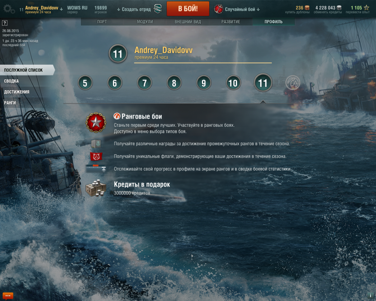 • Ранговые бои становятся доступны при достижении 11 уровня аккаунта. Опыт, необходимый для его достижения уменьшен с 50000 до 30000.