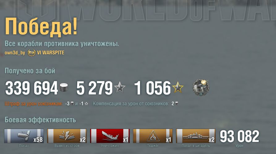 Решил тоже выкатить WARSPITE, набил за бой 48 к. Убил двоих.