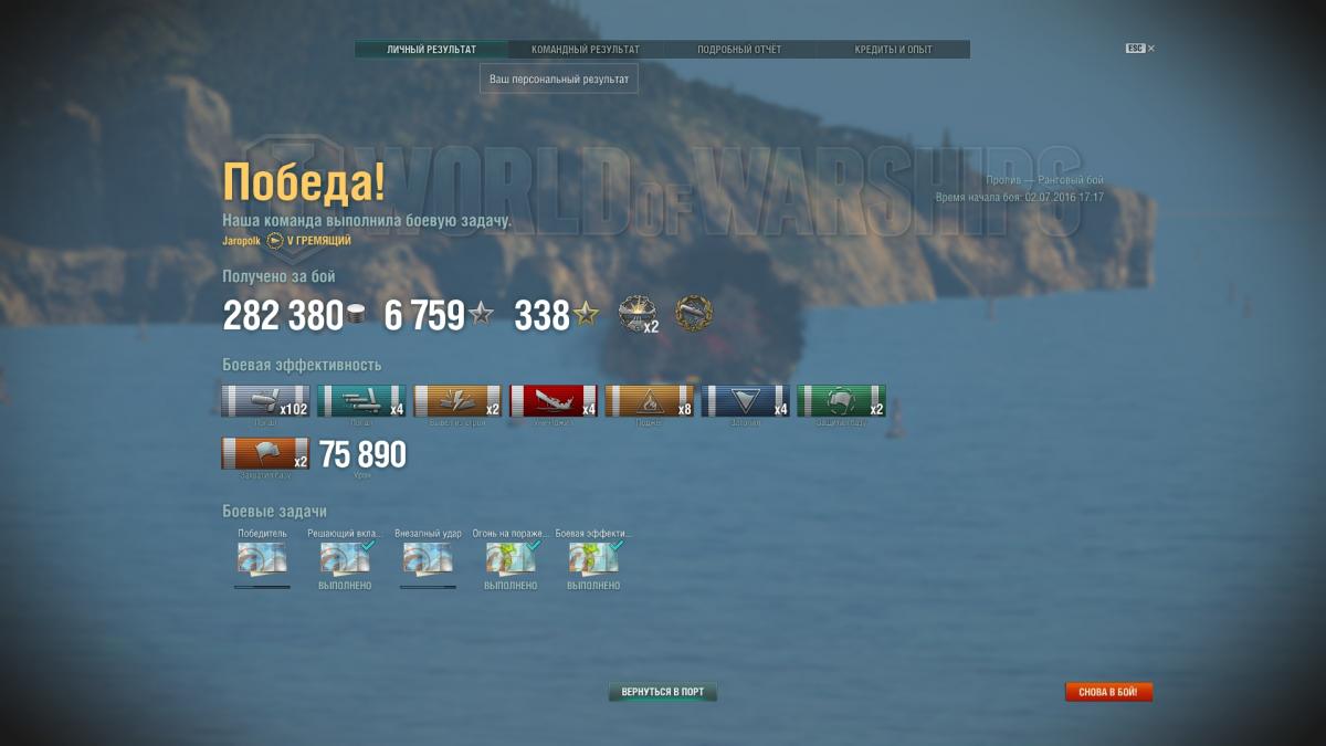 Блискавица. Победа, чистого опыта 2282. Ранговый бой.