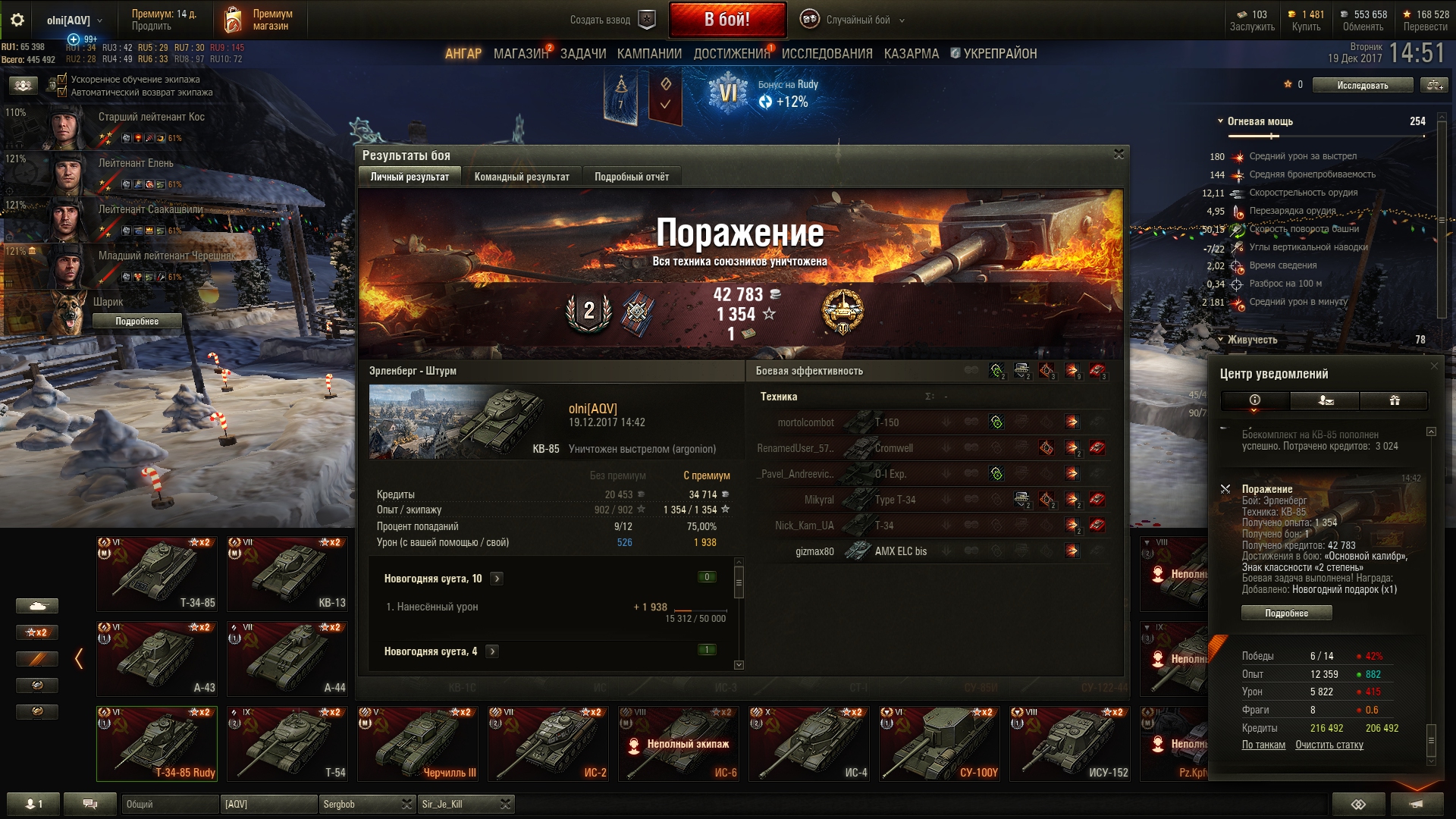 177 997 [FLD] kapitan1212 Бета-тестер 98 361 публикация 16 240 боёв Жалоба #5213 Опубликовано: 19 дек 2017, 10:03:32 Сегодня в 09:22:18 пользователь Sergbob сказал: Доброе утро. Ну что, я отстрелялся в цистернах ) С помощью доната поднял атмосферу до 8 уровня, но и хватит. Красиво нарядил елочку в соответствии с вековыми традициями ) Показать содержимое Ай да Серж!Ай да щучий сын! Поздравляю с тремя развесёлыми барышнями в экипаже! Сегодня в 10:03:36 пользователь LeusYaTenkO сказал: Всем привет)) не знаю за праздник контрразвездки) ну от имени НИколая Николаевича,тобищ от себя,хочу поздравить всех с Днем Святого Николая))) пусть в вашем доме всегда будет счастье и мир,да и будьте вы счастливы! И тебе того же многократно,дважды Коля! Сегодня в 10:59:37 пользователь Sir_Je_Kill сказал: Всем привет и Праздником! Ох у нас и намело! Детям счастье, мэру горе Показать содержимое Женя!Мерина к земле приговорили? Рассказать о публикации Ссылка на публикацию