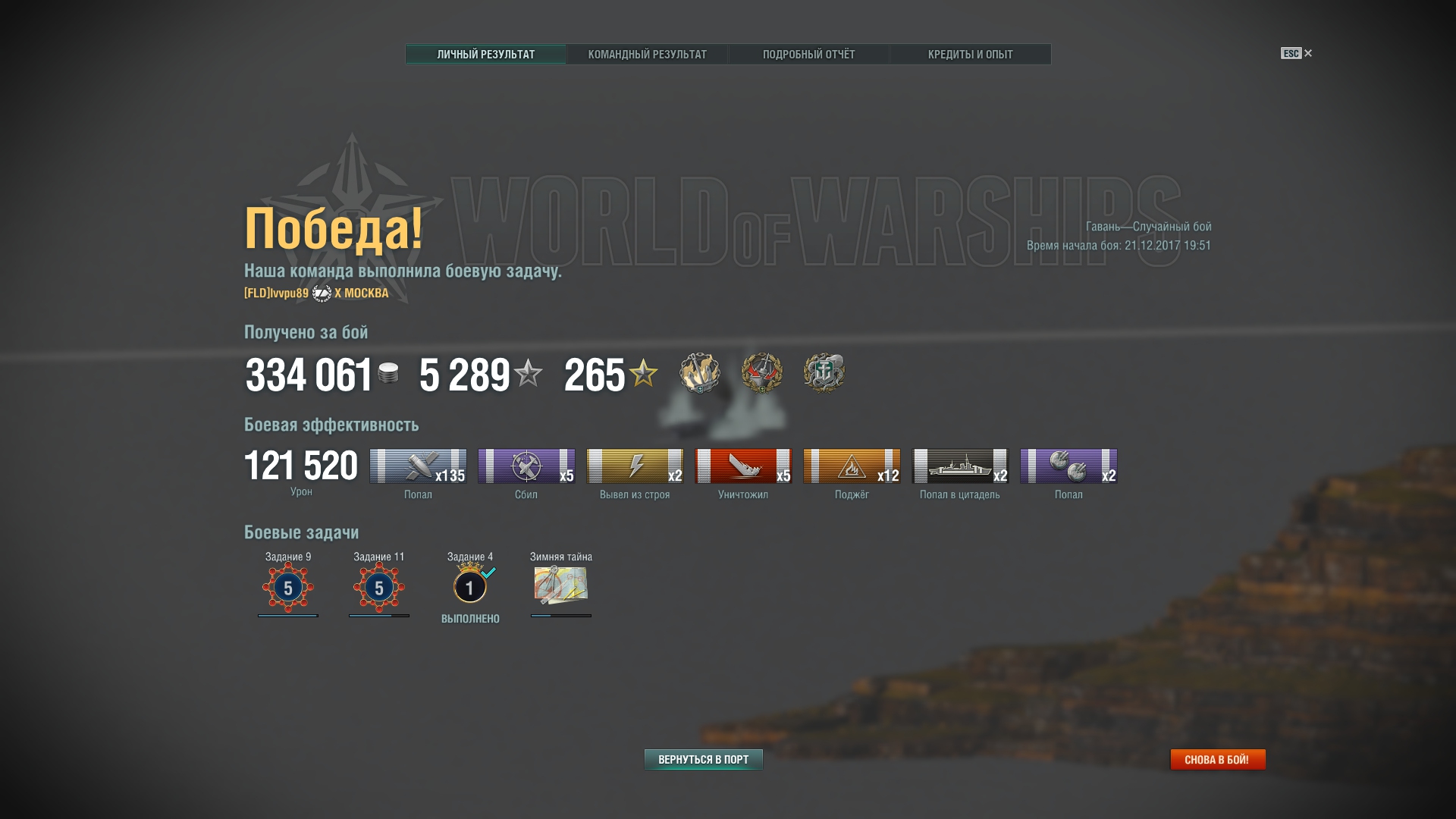 4 [BODA] 2017_tops Участник 25 публикаций 6 264 боя Жалоба #5283 Опубликовано: 21 дек 2017, 17:47:51 Случайно удавшийся бой: Скрытый текст и как его результат - аналог БЗ "Зимняя сказка" для стим-аккакунтов (БЗ "полный вперед) стим-контейнер, свой вариант флага (вместо флага с рыбкой) и свой вариант камуфляжа (бонусы вроде те же): Скрытый текст Рассказать о публикации Ссылка на публикацию