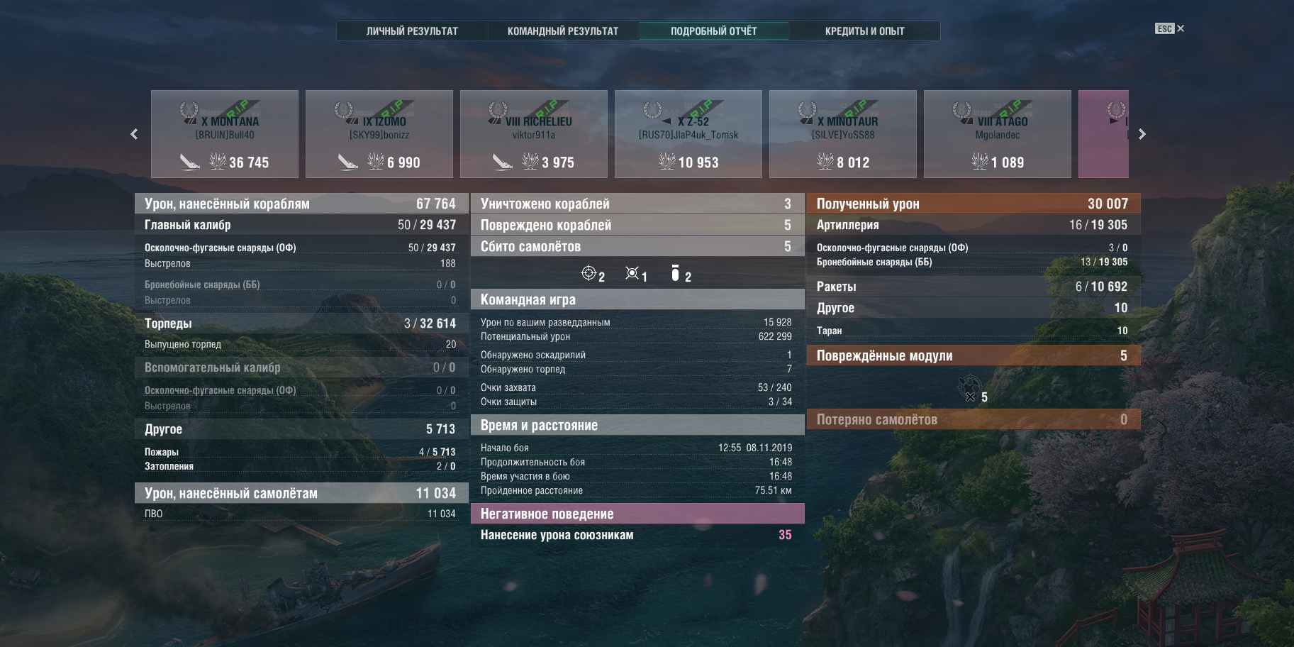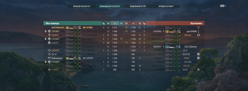 как раз этот корабль реально прощает много ошибок. можно спокойно,не напрягаясь, после рабочего дня в удовольствие покатать. он не рекордсмен в отдельных дисциплинах, но в общем - очень "ровный" кораблик, вполне крепкий, с хилкой, хороший ГК, обычное ПВО, хорошая маскировка(хотя я не от маскировки играю,а от маневра) и конечно же торпеды,которые достаточно часто выручают(но частенько уже после смерти самого Атаго)))