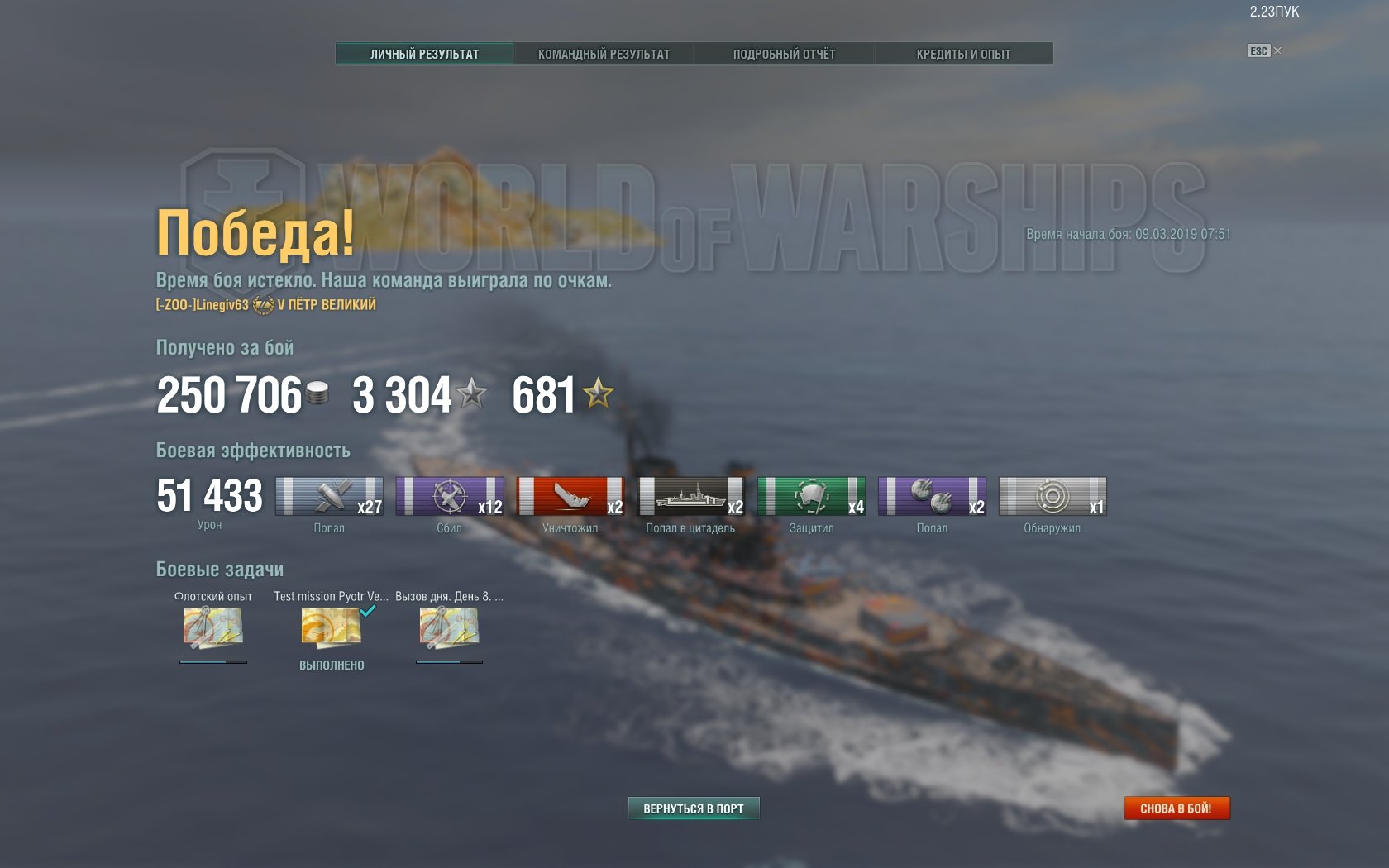 10 843 [OMSK] Linegiv63 Старший бета-тестер, Коллекционер 13 115 публикаций 24 234 боя Жалоба #2844 Опубликовано: 10 мар 2019, 02:42:39 Вчера сразу вот в такой бой закинуло, даже в очереди не стоял. Но и то, Пётр Великий себя показал на Отлично. Скрытый текст 2 Рассказать о публикации Ссылка на публикацию