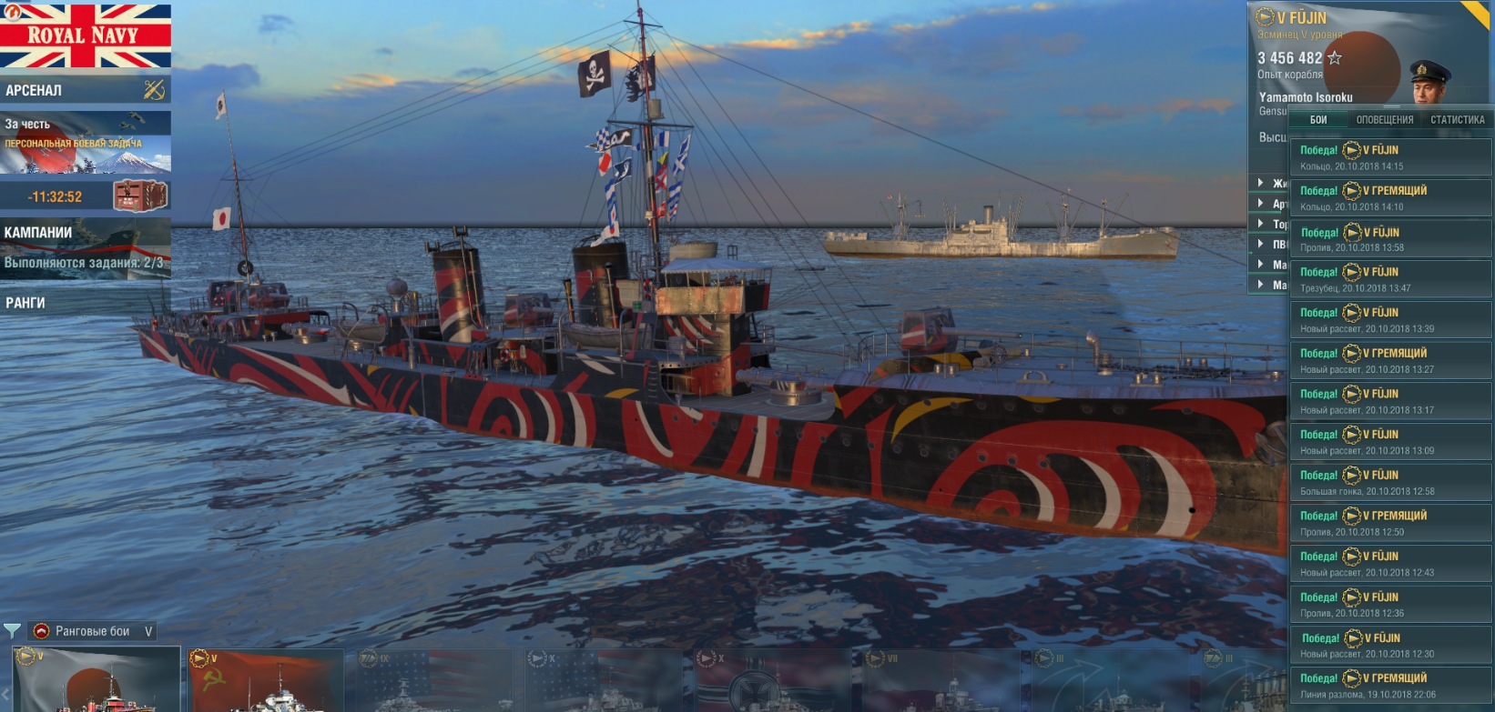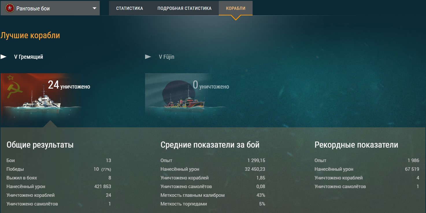 Интересно, скоро ранги 5го уровня, как он себя проявит? Надыбали его немало в свое время, ну что такое 600р за такой прем. Лично я ну конечно на нем пойду. Я ни разу не скиловый игрок, балуюсь ради отдыха, но за 1100 боев на Камике 66% побед в рандоме - то есть за 3 боя продуваю только 1. Этот кораблик все-таки очень злой.