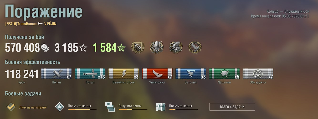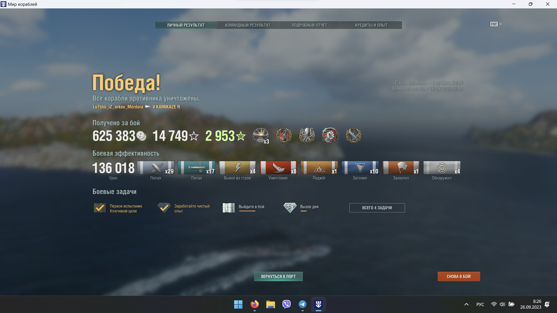 Хороший результат. Только он меня всё равно не заставит играть на Камикадзе). Нет у меня особого интереса торпедками спамить весь бой.