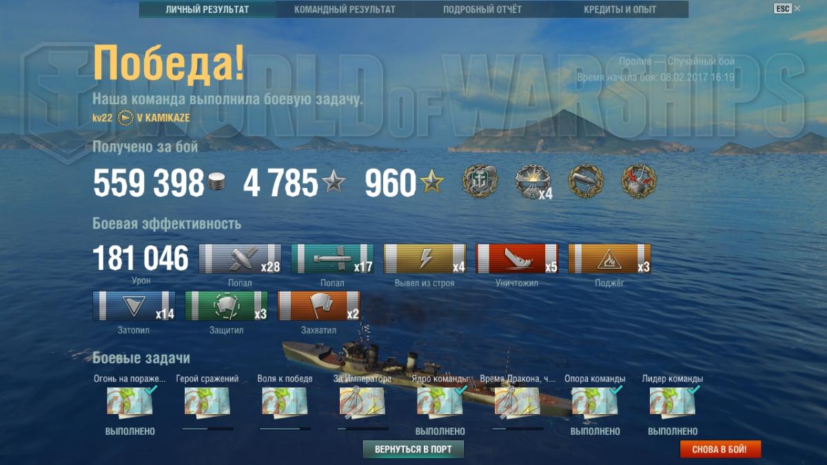 получил камиказе Р =) распробовал немного =) по началу было так себе, пока подобрал кепа, пришлось еще качнуть ему свободного опыта  тыщ на 700 что бы прочуствовать всю силу корабля =) ну вообщем сыграл пока неплохо ) ну просто с учетом что по началу было не очень,но уже в среднем под 70к урона при 50 боях =)  ну корабль реально карает и это тот корабль на котором можно просто тащить бои которые уже проиграны ))) причем внизу списка))) при чем имеется ввиду не бои с алешками а бои где типо перцы крутые ) бой с захватом точки это был вообще апогей я стоял просто минуту перед точкой ждал пока они разьедутся)) плюсиков на нем можно срубить штук так 7 за бой =) белфасты шанхорсты флинты ху...  всеравно просто камиказе их всех рубит на салат :izmena: первый годный корабль с ивентов голосовал за то что он имба =)