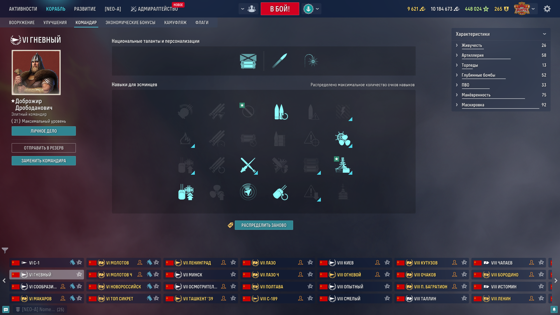 А серьезно - по задумке Гневный, конечно, чистый артиллерист, но у меня, например, вместо ДПМ на четвертой полке ему выдан инвиз, ну и какое-никакое инвизное окно сброса торпед есть, так что он ближе к универсалу. В общем, во что заточишь, то и получится.