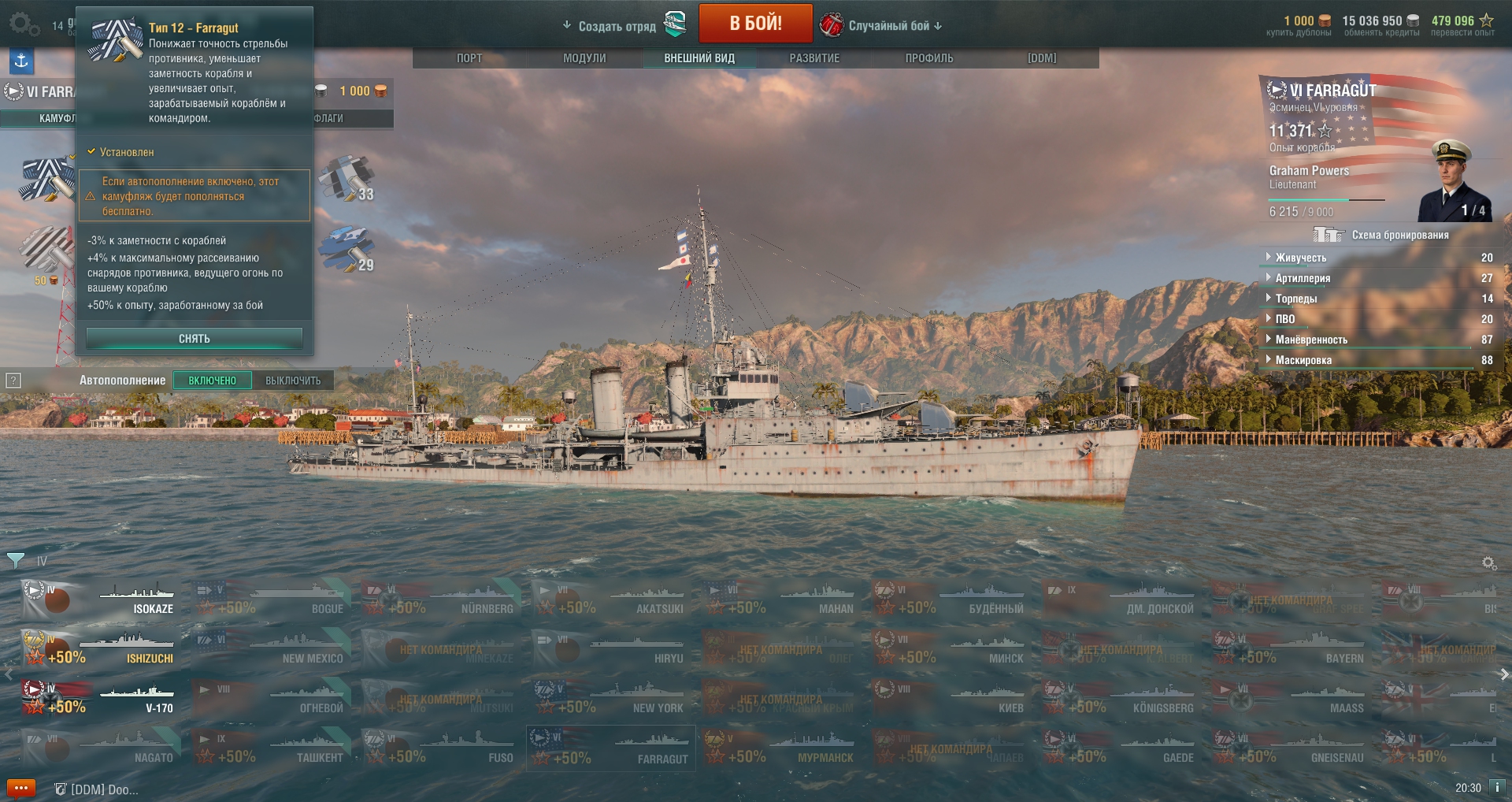 90 Zakhar009 Старший бета-тестер, Коллекционер 169 публикаций 12 757 боёв Жалоба #26 Опубликовано: 5 июн 2017, 14:12:11 Обновление дельное. Поддерживаю. В дальнейшем предлагаю внести следующие изменения. 1) Вернуть при игре на авианосцах фокусировку камеры на самолетах или корабле по нажатию кл. "Пробел". Было ведь это! 2) Без установки модов играющий на корабле с торпедными аппаратами имеет преимущество перед игроком на корабле без них. Поясню. Нажав троечку я вижу в каком направлении движется противник! В модах об этом худо-бедно говорит угломер. С исторической точки зрения все легитимно! Корабельные системы управления огнем подавали такие сведения еще в ПМВ. Уж извините, если это не входит в "Интерфейс"... Рассказать о публикации Ссылка на публикацию