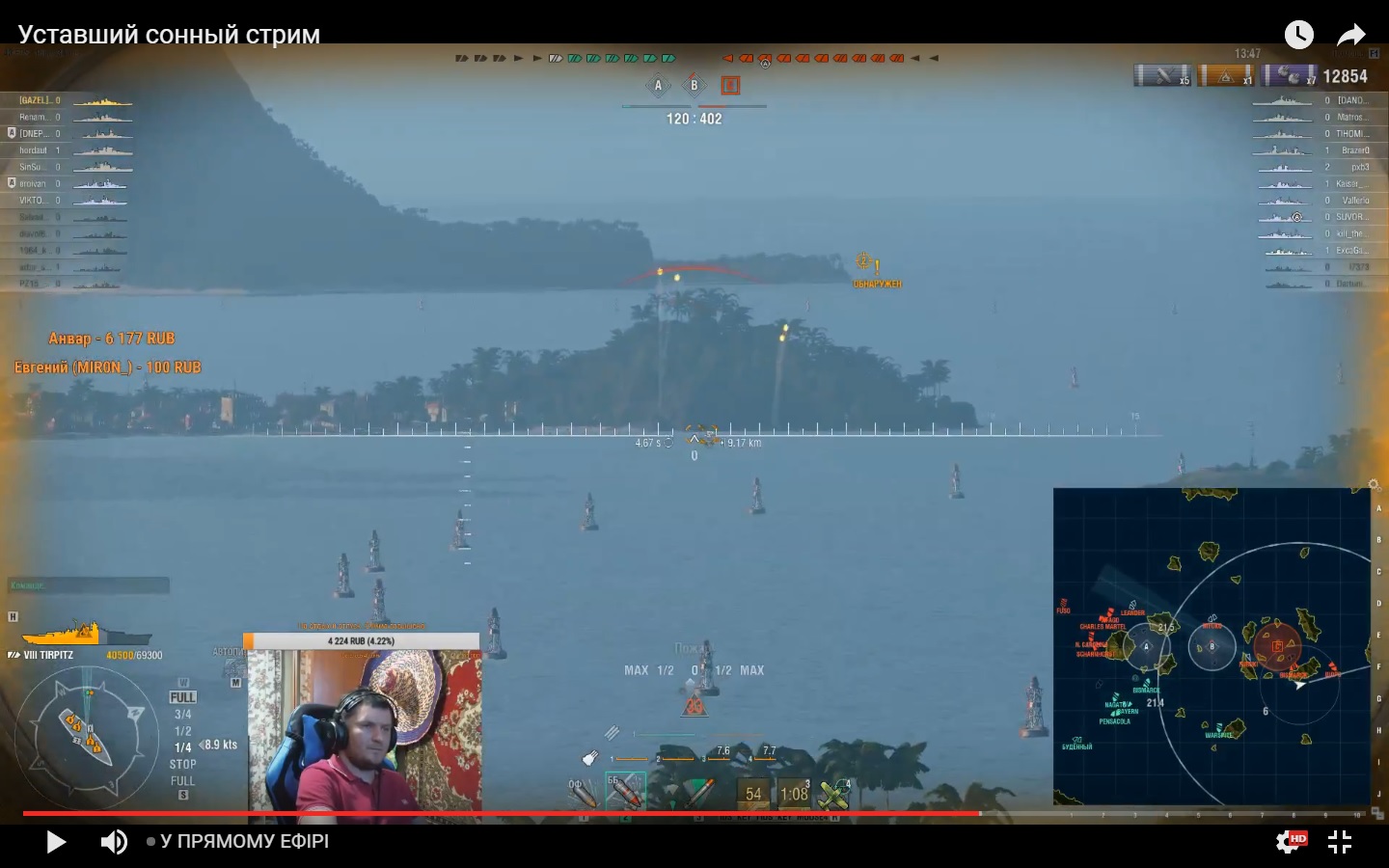 2 302 anonym_Eg5ZTARUGjy8 Участник 2 572 публикации Жалоба #40 Опубликовано: 23 май 2017, 20:56:50 53 минуты назад, ExcaGamer сказал: Вот скажите мне, грамотные капитаны, можно попасть в эсминец в дымах, стреляя через остров? Я конечно сам стрелял, можно было примерно догадаться где нахожусь, но суть в том что целенаведения не было, а снаряды Тирпица (Nomen_Est_Omen_) все равно перелетели через остров, т.е. для него точка прицеливания была 100% скрыта за островом (также как и у меня весь его корабль), однако результат - точное попадание. Жаль без модов играю и реплеи не пишу.. Вот прекрасный образчик паранойи. Я не говорю, что "читов", "запрещенных модов" и прочего #тогочегонельзяназывать нет, но процентов 80-90 всяких "он читорг, как он попал, увидел, победил" можно отнести к подобным ситуациям. Самое смешное, что Номен сейчас стримит и этот момент как раз есть на стриме: Скрытый текст Скачати відео Вот Ваш выстрел: Скрытый текст А вот полетели снаряды в ответ: Скрытый текст Так что никакого чуда здесь нет. Рассказать о публикации Ссылка на публикацию