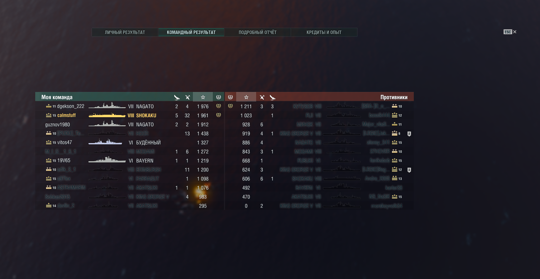4 145 [RPZDN] Novosib79 Участник 7 647 публикаций 16 205 боёв Жалоба #15 Опубликовано: 6 сен 2017, 10:24:37 Это история о прохождении не любимого Вами корабля канечно очень увлекательна и интересна, но на мой взгляд Вы через чур всё преувеличиваете. 24 минуты назад, calmstuff сказал: Вчера всю первую половину дня шли сливы с редкими проблесками побед. Я стиснув зубы упорно проходил ШоКАКУ - единственный авик в игре от которого меня тошнит. Меня бесят КрБриты, но вчера, стиснув зубы я прошёл Эдю и выкупил Нептун. Да того достал этот британский геймплей что начав переобучать Кепа на Белке выдержал только два боя, потом плюнул и допереобучал за элитку. Но я качал наверно его больше месяца, иногда просто сбивая звезду в день проводя один бой, всё остальное играл на любимом Атаго, а последнее время, в связи с активностью авиков на Принце, очень кстати понравился. То есть не доводил себя "до ручки"заставляя себя играть до рвоты на не особо понравившемся корабле. Игра же должна приносить удовольствие, а если нет то это уже не игра. Всё это думаю сказалось на Вашем состоянии. 35 минут назад, calmstuff сказал: Сегодня утром. Что-то мне подсказывало что ситуация будет не в мою пользу... Специально снова сажусь на Энтерпрайз (для чистоты эксперимента) , и... это было нечто! Нас с оппонентом на Шокаку отбалансило так что для авиков в этом бою вообще не было ни одной доступной цели То есть можно было просто выйти сразу из боя, это не сильно бы на него повлияло - согласитесь случай почти уникальный! Поясняю: мы единственные 8-е в бою в компании с Мойкой, Гиндебургом, Монтаной, Грозовым, Флетчером, парой "секретных" паназиатских ЭМ 9-10 уровня (у меня сильные подозрения что это клоны амеров) , Москвой, Донским ... Для тех кто в танке сидит поясню: мои (и оппонента тоже) звенья не в состоянии долететь до вышеперечисленных кораблей , даже одиночных. Так что единственное что оставалось это светить точки издалека - подойдешь поближе, звено сразу начинает таять... Ну еще повесил зонтик на наш Ямато для порядка, но он ему был не особо нужен т.к. противник просто не мог долететь: сунулся было но потерял все звенья и больше не пытался. И, как вы можете догадаться ракоманда в этот раз была у меня! Слили бой в одни ворота за 10 минут. Второй подход. Сажусь за Курфюрст. Вроде все Ок, я в топе списка явных перекосов нет. Вот только повоевать я увы так и не успел: за 5 (пять Карл!) минут половина нашей команды слилась, я оказался в компании пары инвизных ЭМ противника и под фокусом Монтаны, Москвы и Чапаева. Успел забрать с собой Чапая и одного из ЭМ . Ах да, в таблице был таки первым - это было не сложно, т.к. у остальных там очки близкие к нулевым. Резюме: ПК выключил. Вот думаю: зайти вечером попробовать или еще рано? Я на Авиках не играю, но сильно подозреваю когда Ружьё или Индюк попадают на 8-е уровни, так же в двоём как и Вы с Шакакой, то походу они то же не особо счастливы, а опыта у них намного меньше Вашего на 8-м, ну просто зачем они частенько так сливают свои звенья об мои 8-ки непонятно. Ну думаю в такой ситуации надо попробовать заканибалить друг-друга что ли, пока туда-сюда слетаете может ПВО уже у вражин и пообстучат немного. Рассказать о публикации Ссылка на публикацию