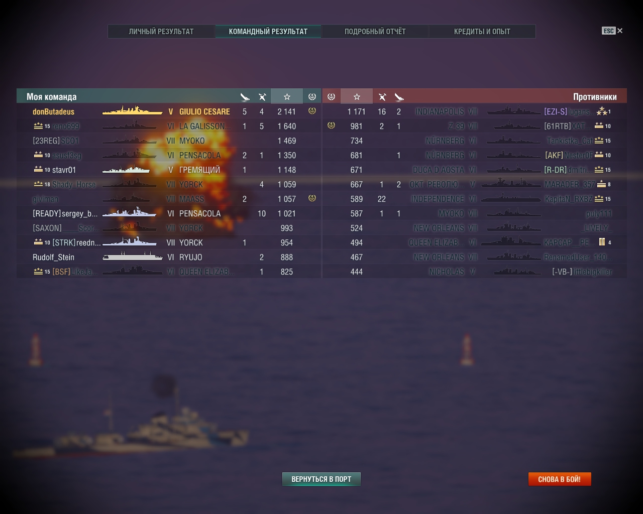 Да ну на... Кёниг для Цезаря вообще не опасен. На 5 уровне это один из лучших (если не самый лучший) линкор!Вот 6-ки, (не говоря уже о 7 уровне) уже опасны!Фусо сжечь может Цезаря ну не просто легко, а будем так говорить - без сверхусилий. Однако не смотря на это Цезарь и на 6 и на 7 уровне не чувствует себя терпилой, а достаточно хорошо играется и даст отпор любому противнику!Пока... Пока не понерфили, глядя на наши посты...:Smile_facepalm: